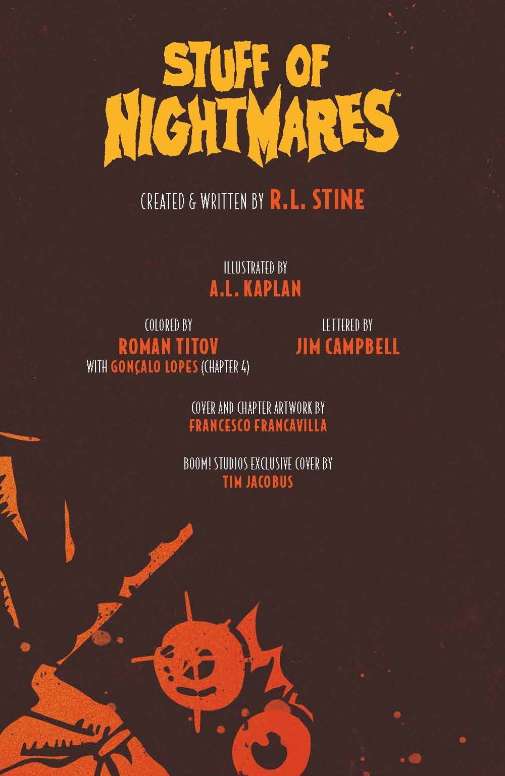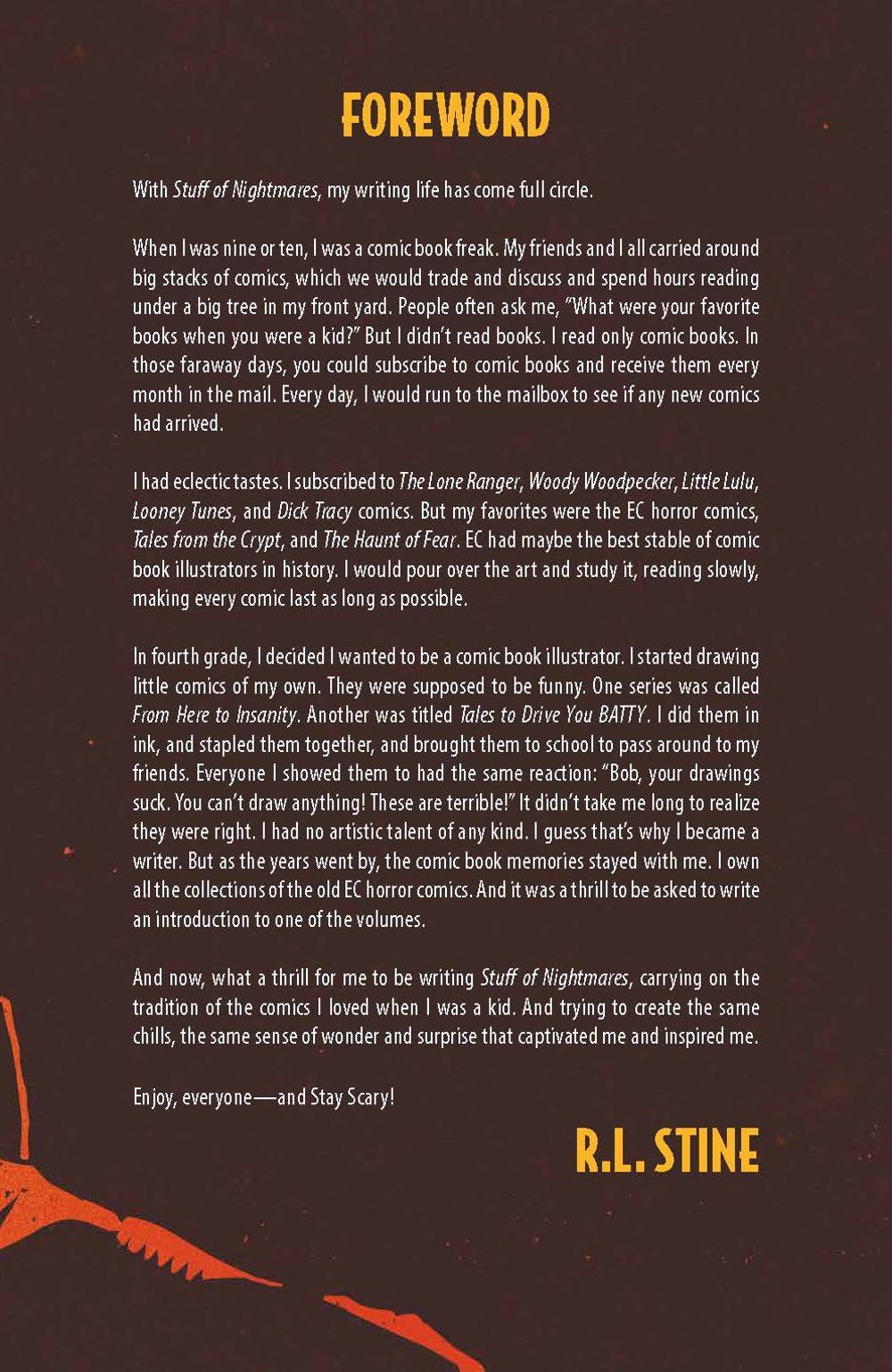 The complete collection of R.L. Stine's first comic for adults! The master of horror returns to comics with this fresh reanimation of a horror classic! The iconic R.L. Stine is joined by artist A.L. Kaplan (Maw, Jim Henson's The Storyteller) in this twisted retelling of Frankenstein. You might be familiar with the story of a mad scientist hell-bent on creating life, but these two demented brothers made something else entirely! Horror lovers won't want to miss this imaginative retelling with more than a few twists, as R.L. Stine takes on one of the most iconic stories in horror history! Collects Stuff of Nightmares #1-4.