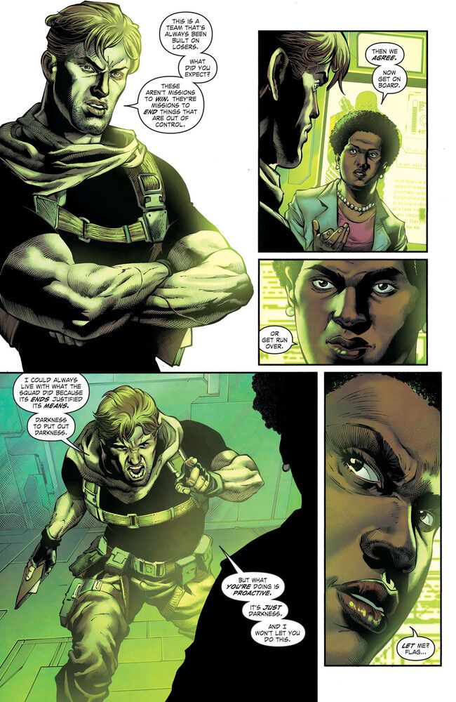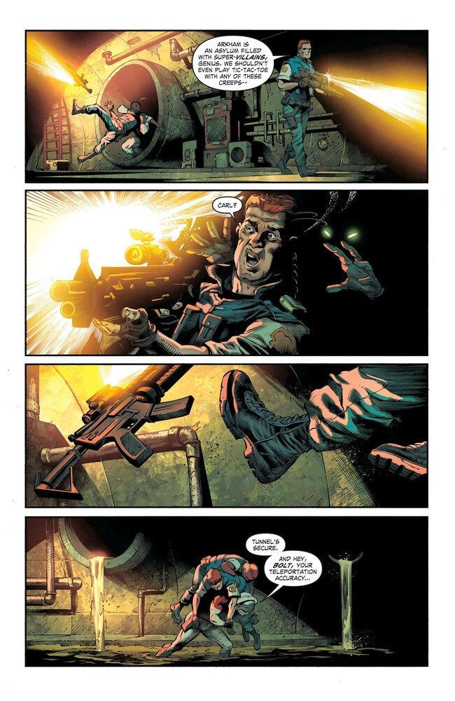 Amanda Waller—now back in control of the Squad—sends a new Squad into Arkham Asylum to "recruit" the deadly Court of Owls assassin Talon while she interviews another new candidate: Superboy.