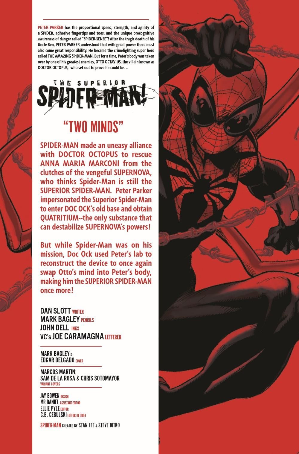 Superior Spider-Man's greatest foe has always been Peter Parker's own memories. With Anna Maria's life at stake, Otto seeks to not only be the Superior Spider-Man but the ONLY SPIDER-MAN.