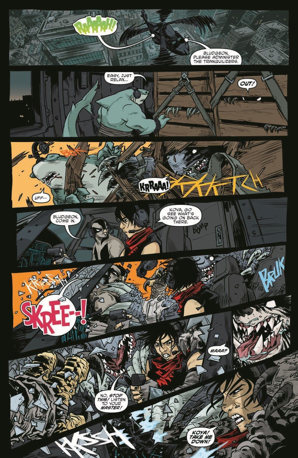 Karai searches for two new powerful mutants who could tip the balance of power in New York City. Meanwhile a familiar character from the future arrives with a most unusual quest! All of this AND the return of Bebop & Rocksteady? Don't miss the start of an exciting new story arc as Sophie Campbell returns to interior art!