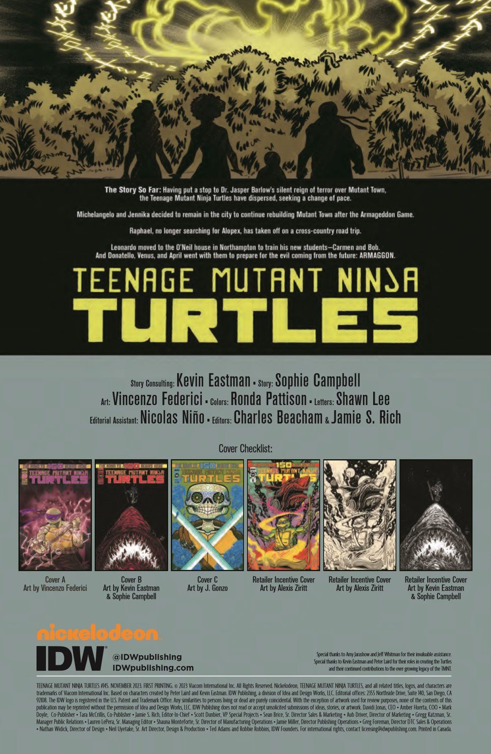 Change is constant, but family is forever…at least it's supposed to be. Since recent events have left his family fractured, Donatello has taken it upon himself to do whatever it takes to protect his brothers from a threat only he saw coming… Little does he know it's already too late… ARMAGGON IS INEVITABLE.Don't miss the first issue of Sophie Campbell's definitive TMNT tale! The road to #150 starts here!