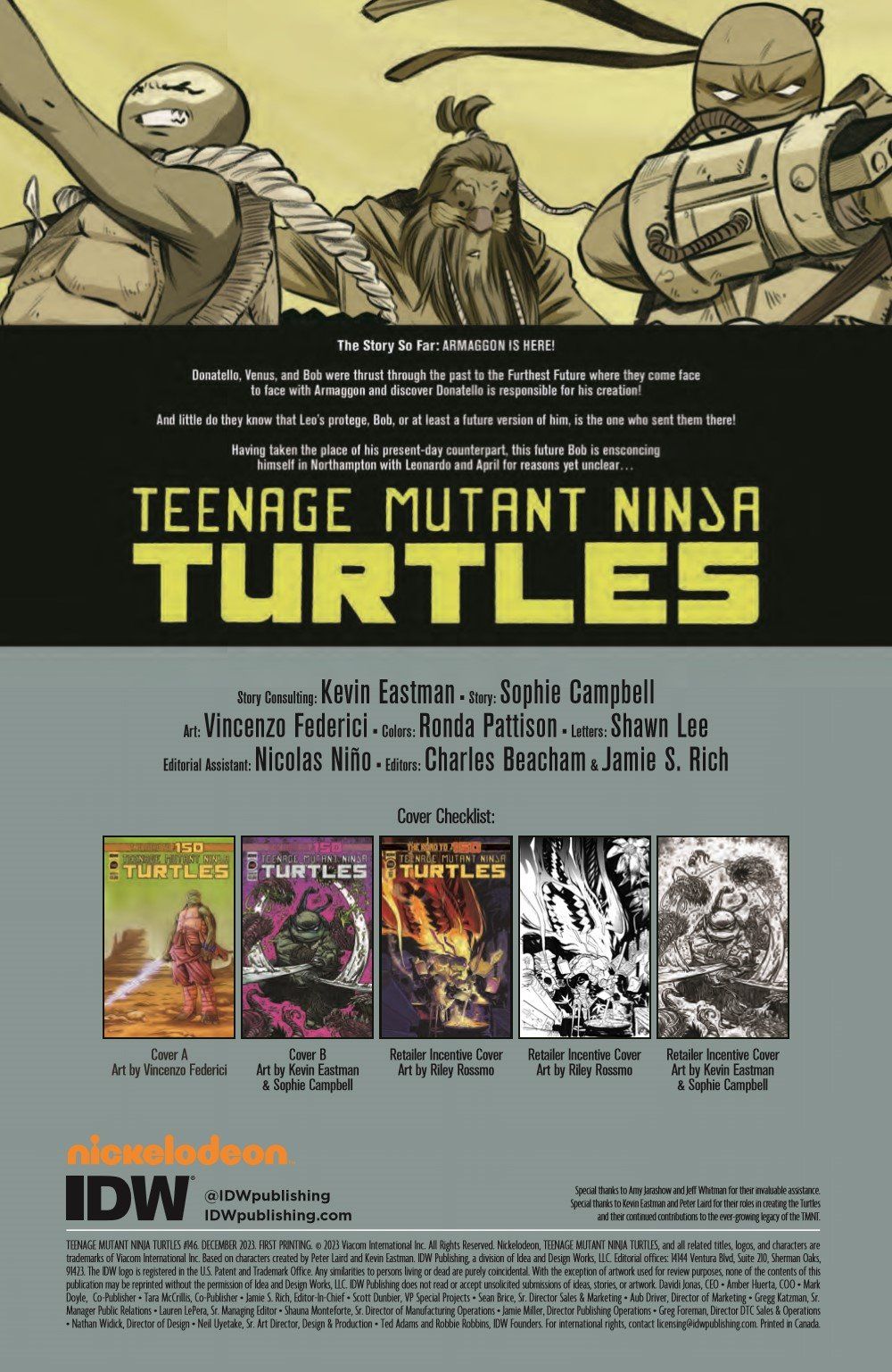 As Donatello uncovers the truth about Armaggon's origins, the time-eating tyrant begins to exert his influence on one of the Turtles' allies. It's a race against time as the road to #150 continues in Sophie Campbell's biggest TMNT story yet!