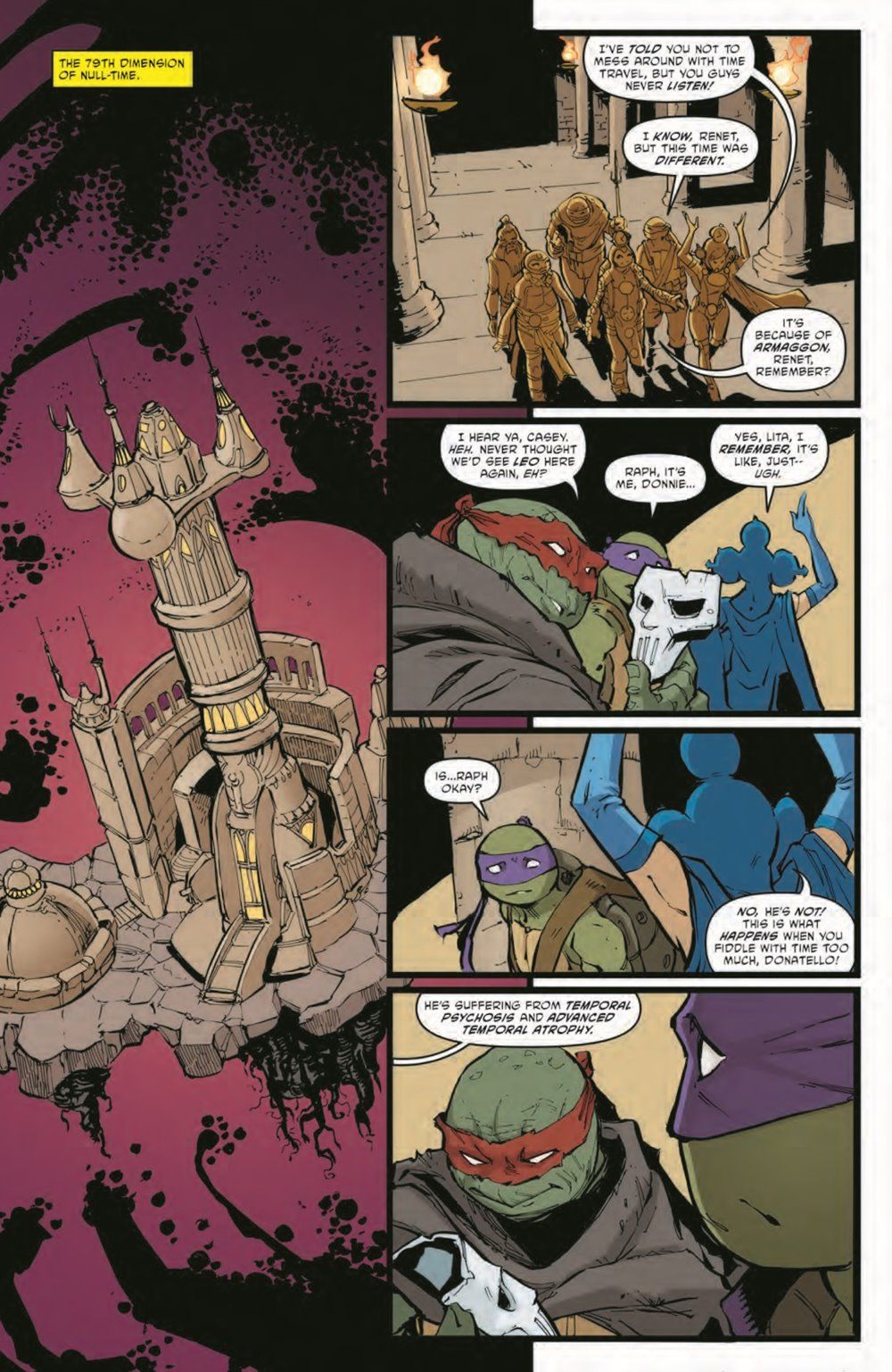 Armaggon's intentions are revealed, and it's worse than Donatello could have ever imagined… The very fabric of reality is at stake—and back in the present, Leonardo's new protégé is on a path toward destruction!!! Can Donnie find a way to stave off Armaggon's attack or is it time for the TMNT?The road to #150 continues here!