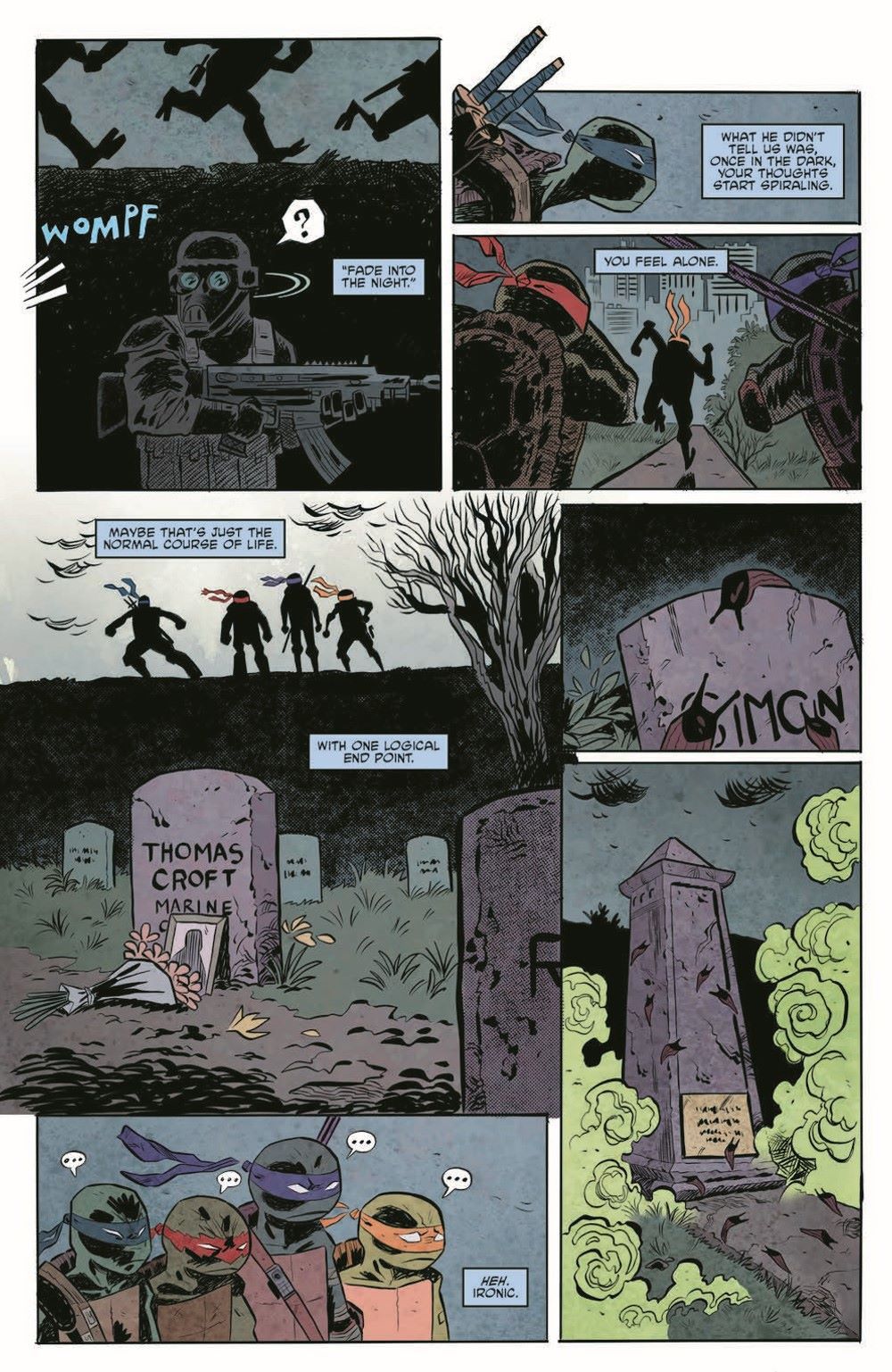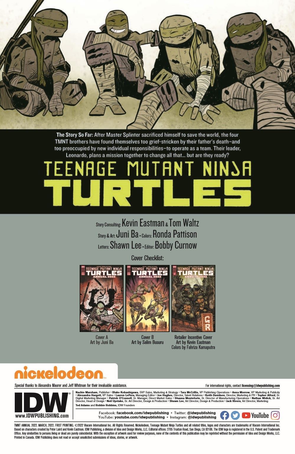 The Turtles embark on a secret mission to their roots, but a mysterious creature hunts them relentlessly. The Turtles will have to find a new way to come together to escape their foe-and the pain that haunts them. A special story of remembrance and family written and drawn by acclaimed artist Juni Ba!
