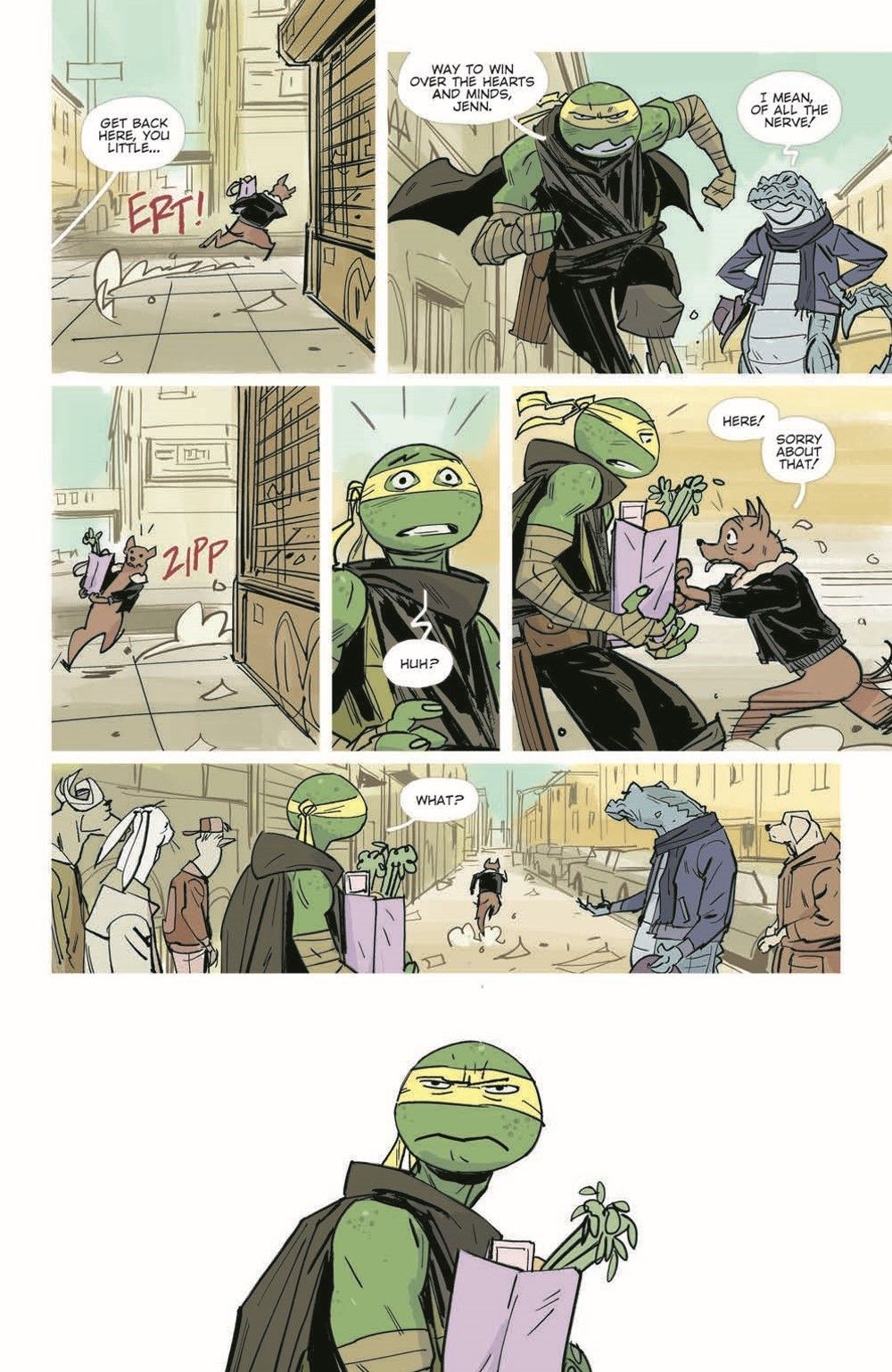 The newest member of the TMNT team embarks on her own adventure in this stand-alone tale! Trying to acclimate to life as a mutant, the newest Turtle, Jennika, will be forced to come to terms with both her troubled past and conflicted present. In search of a dangerous procedure to reverse mutation, will Jennika be tempted by the call of her old life? And how far will she go to save those who gave up on her long ago? Brahm Revel returns from his acclaimed TMNT Universe tale "What is Ninja?" to reveal more of Jennika's backstory!