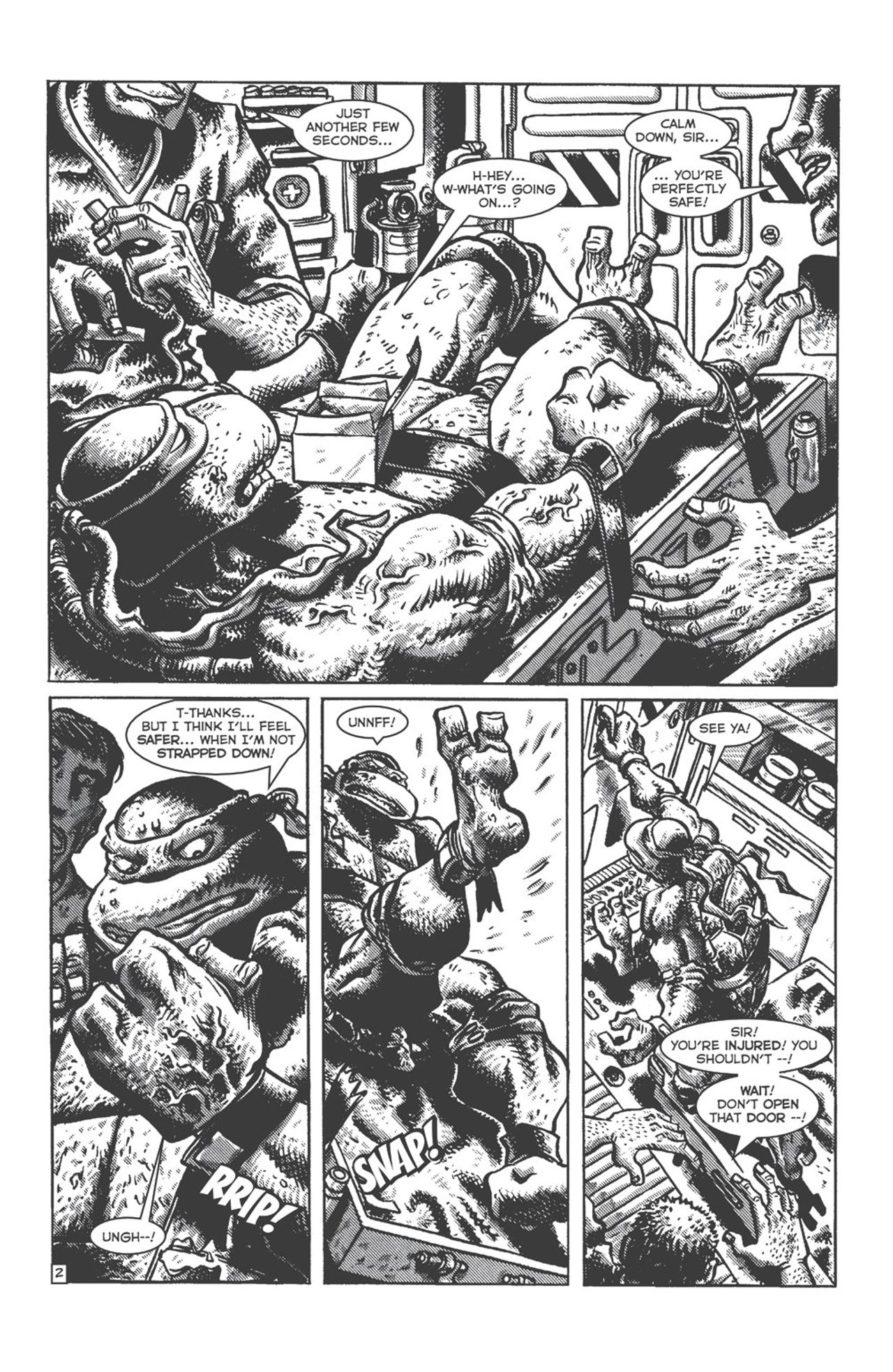Reprinting the fan-favorite Volume 4 series from Mirage Studios! Michelangelo was separated from his brothers during their battle with the Madhattan Militia, and he's been picked up by a mysterious flying ambulance that's going to take him somewhere new, with old faces ready to meet him! Back in the sewers, Leonardo, Donatello, and Casey Jones head out to investigate an abandoned armored van they found nearby and find horrifying mysteries within. All of this while some sinister activity orbits the Earth on the moon!