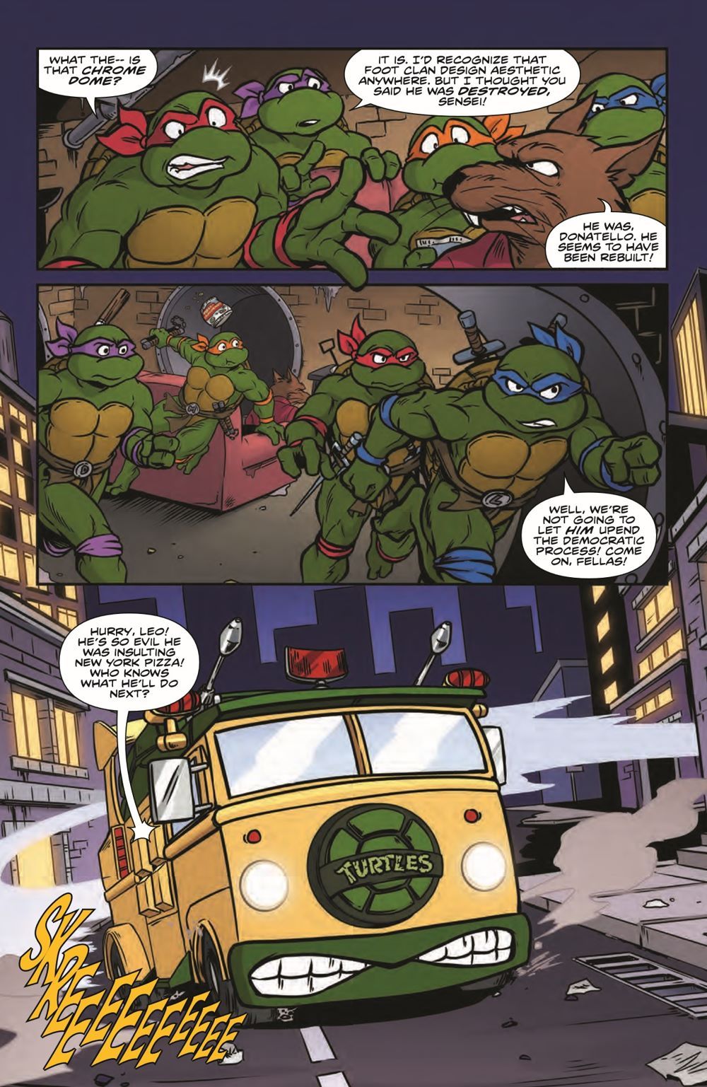 There's a special election in New York to select the next mayor, and a rebuilt Chrome Dome is running for office! If the android is still an agent of evil, it'd be a disaster for the Teenage Mutant Ninja Turtles…to say nothing of the nonmutant citizens of New York City! Saturday Morning Adventures continues with "Shiny and Chrome"!