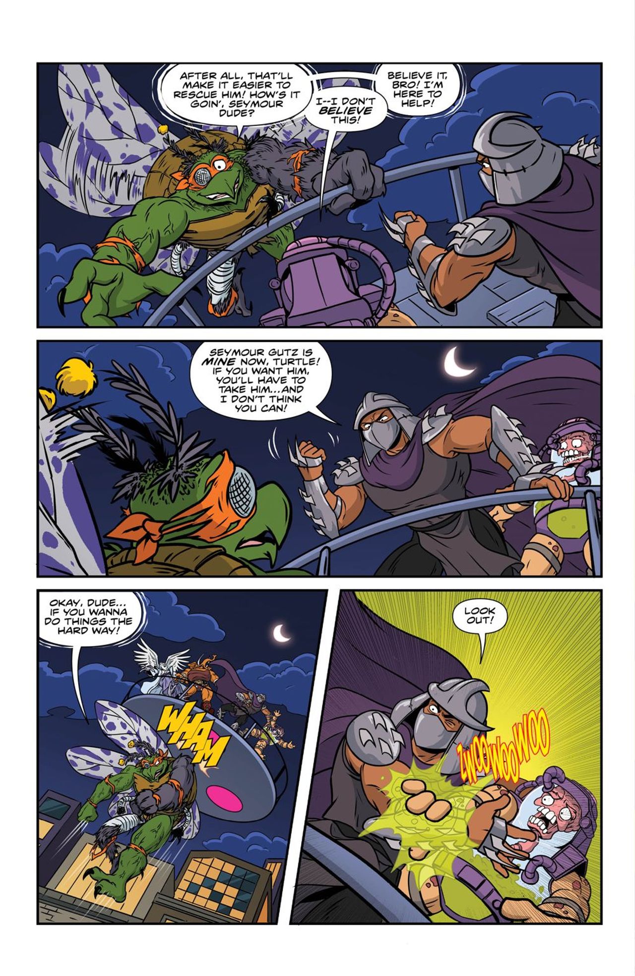 Seymour Gutz has become the Mutagen Man again, and he’s randomly mutating New Yorkers all over the city! In fact…he’s even mutated Michelangelo! (Did you know you could further mutate a mutant? The Teenage Mutant Ninja Turtles sure didn’t!) The Turtles need to get Seymour back to TCRI to formulate a cure—but first they need to rescue him from the Shredder, who has captured him with the desire for the Mutagen Man to create an army of mutants!