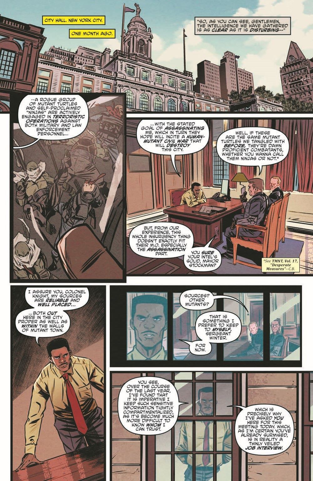 OLD SOLUTIONS TO NEW THREATS! As Shredder and Leonardo team up with Cudley the Trans-Dimensional Cowlick in order to seek out the help of the enigmatic Cherubae in Dimension Z, Michelangelo joins Commander Dask and his Neutrino warriors on a quest to locate the rebellious Nova Posse in Dimension X. Meanwhile, Raphael is forced to swallow his pride—and his hatred—as he hunts down the missing Old Hob in New York City. But even if they find them, will the TMNT's quarries be willing to join the battle against Rat King's latest deadly pawns—Baxter Stockman, General Krang, and Madame Null—who are already taking the fight to Donatello and Jennika in Mutant Town?