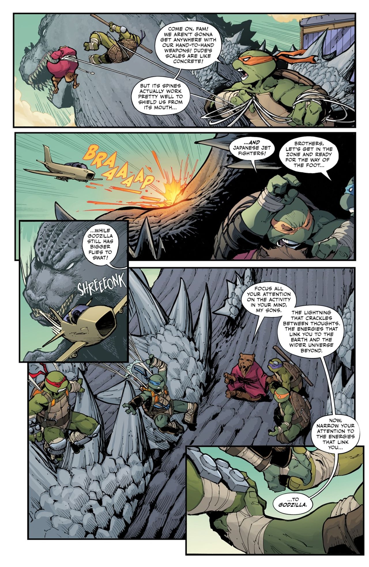 really, really big. ALSO: The Teenage Mutant Ninja Turtles make a direct assault on Godzilla! But are they enough to save Tokyo?! Perhaps April O'Neil's dreams of the Shobjin Twins will lead the way to reinforcements