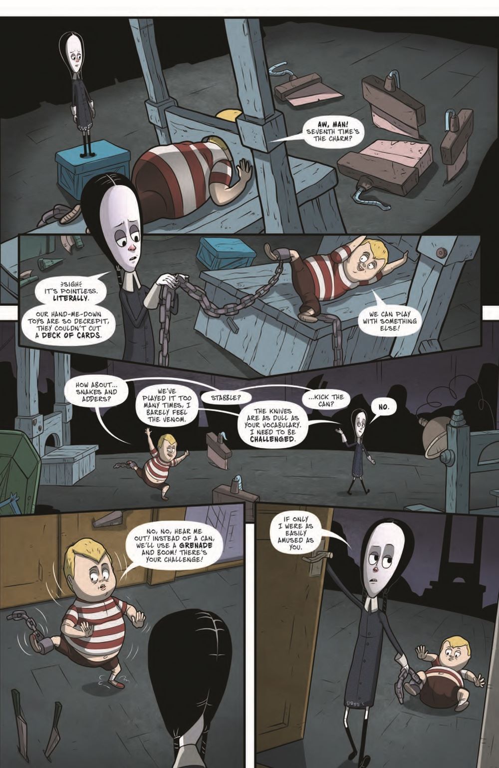 Wednesday Addams doesn't feel like she fits in anywhere. Not even at home after she discovers a beauty magazine in her Uncle Fester's room that tells her all about how she should look and act. It doesn't keep her down for long, however, as she quickly realizes that rather than change herself, it would be more fun to make over her family and force them to accept the societal norms they all normally reject. Reprinting the IDW one-shot, this spin-off from the animated The Addams Family movie features all your favorite characters, including Gomez, Morticia, Pugsley, Lurch, Thing…and, of course, Wednesday. Featuring a new macabre cover by Chynna Clugston Flores (Blue Monday), this kicks off a whole new run of comics featuring the creepy, kooky, altogether spooky Addams Family!