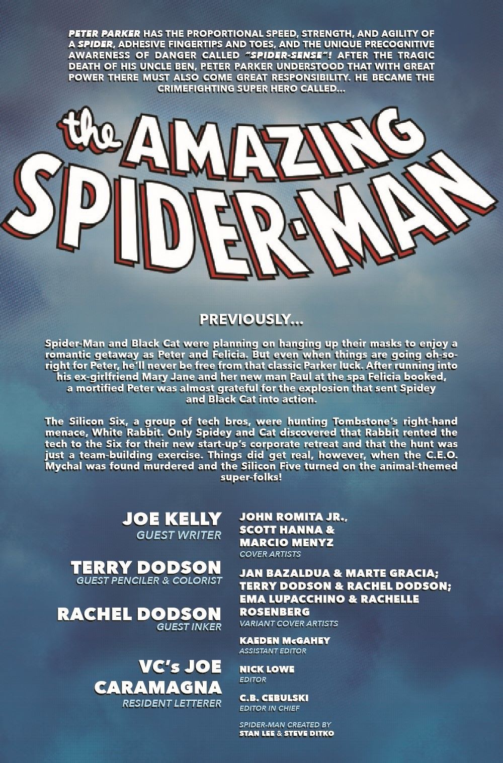 Someone tries to kill Spidey and Black Cat. You thought this would be easy for Peter? Nope! The special two-parter from superstar guests Joe Kelly and Terry Dodson concludes here!