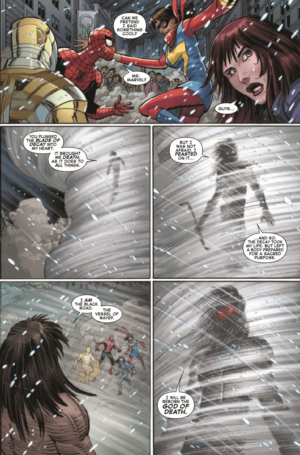 Now fully in the present, the Emissary has returned and his power is so far beyond Spider-Man's abilities. The heroes may figure out a way to win, but the cost of victory will be so immense that you may hope they don't...