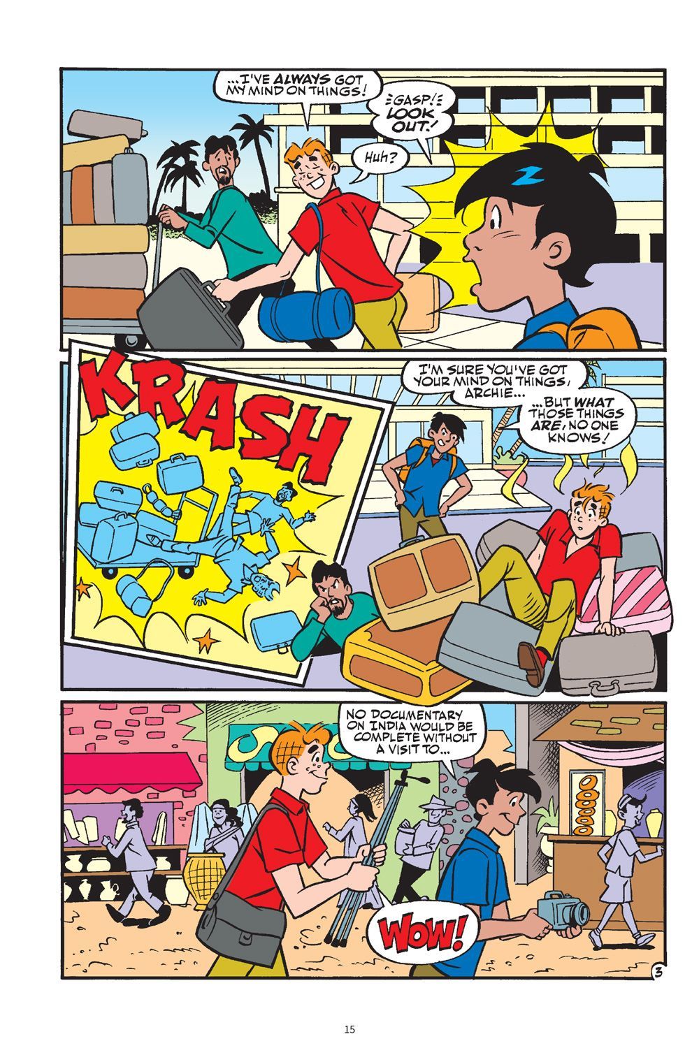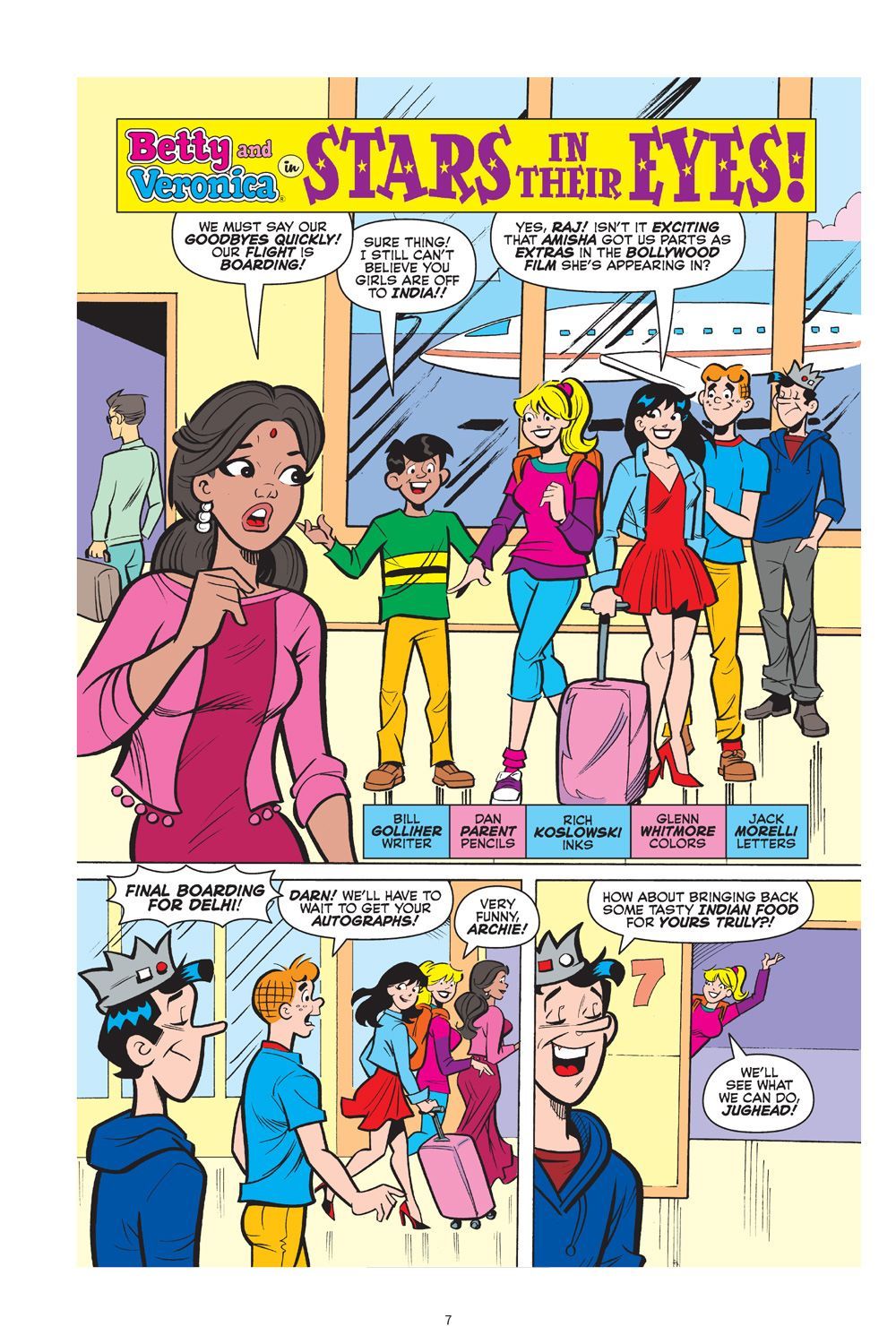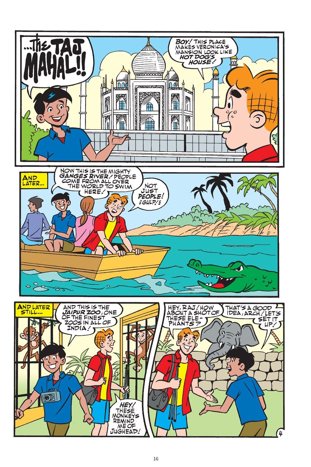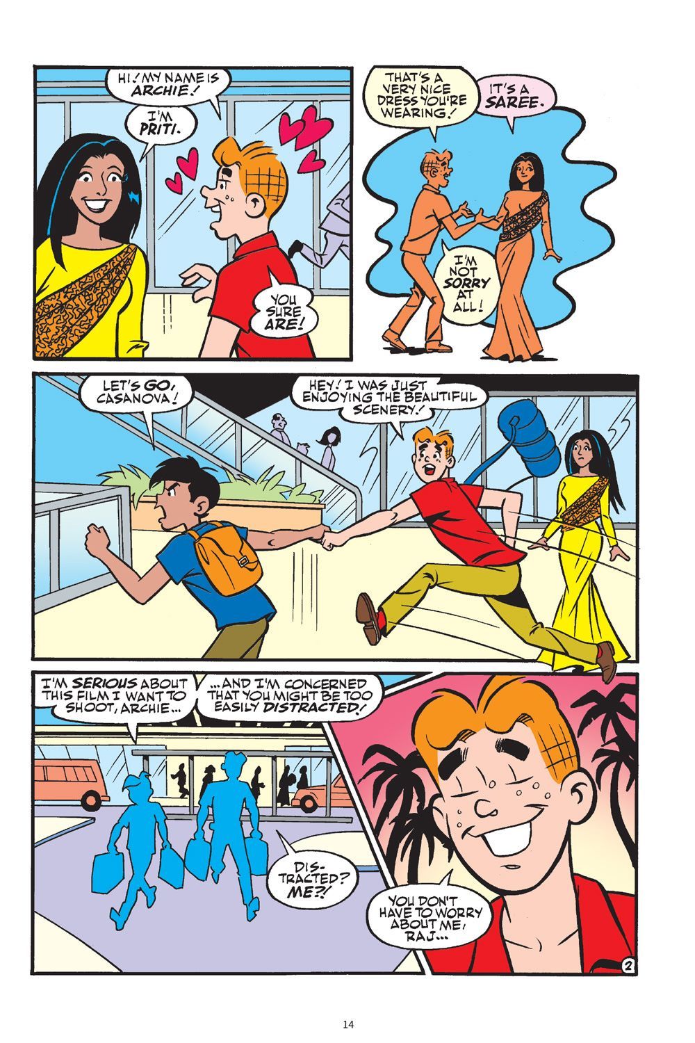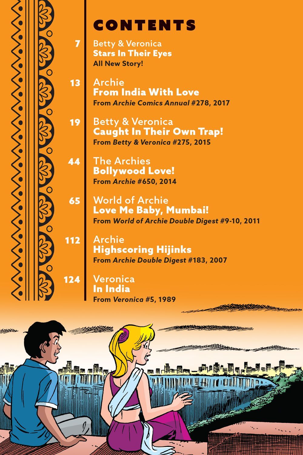 Archie and his friends from Riverdale have been globetrotting for decades… but their favorite place to visit by far is India! This special collection includes every story where Archie, Betty, Veronica, Jughead, and yes, even Reggie, have travelled to the great country. And what would any great trip be without plenty of romance, special cameo appearances, and TONS of musical moments? Plus, a BRAND-NEW STORY! In "Stars in Their Eyes," Bollywood star Amisha Mehta has a film lined up to shoot in India and manages to get Betty and Veronica a gig as extras. The girls arrive on the set and Amisha discovers one of the biggest teen heartthrobs, Prasad Arora, is now scheduled to be in the film as well. When she hears this, she's hopeful she will be in a scene with her crush. Betty and Veronica decide to play matchmaker to get Prasad and Amisha introduced... but will they cause more harm than good?