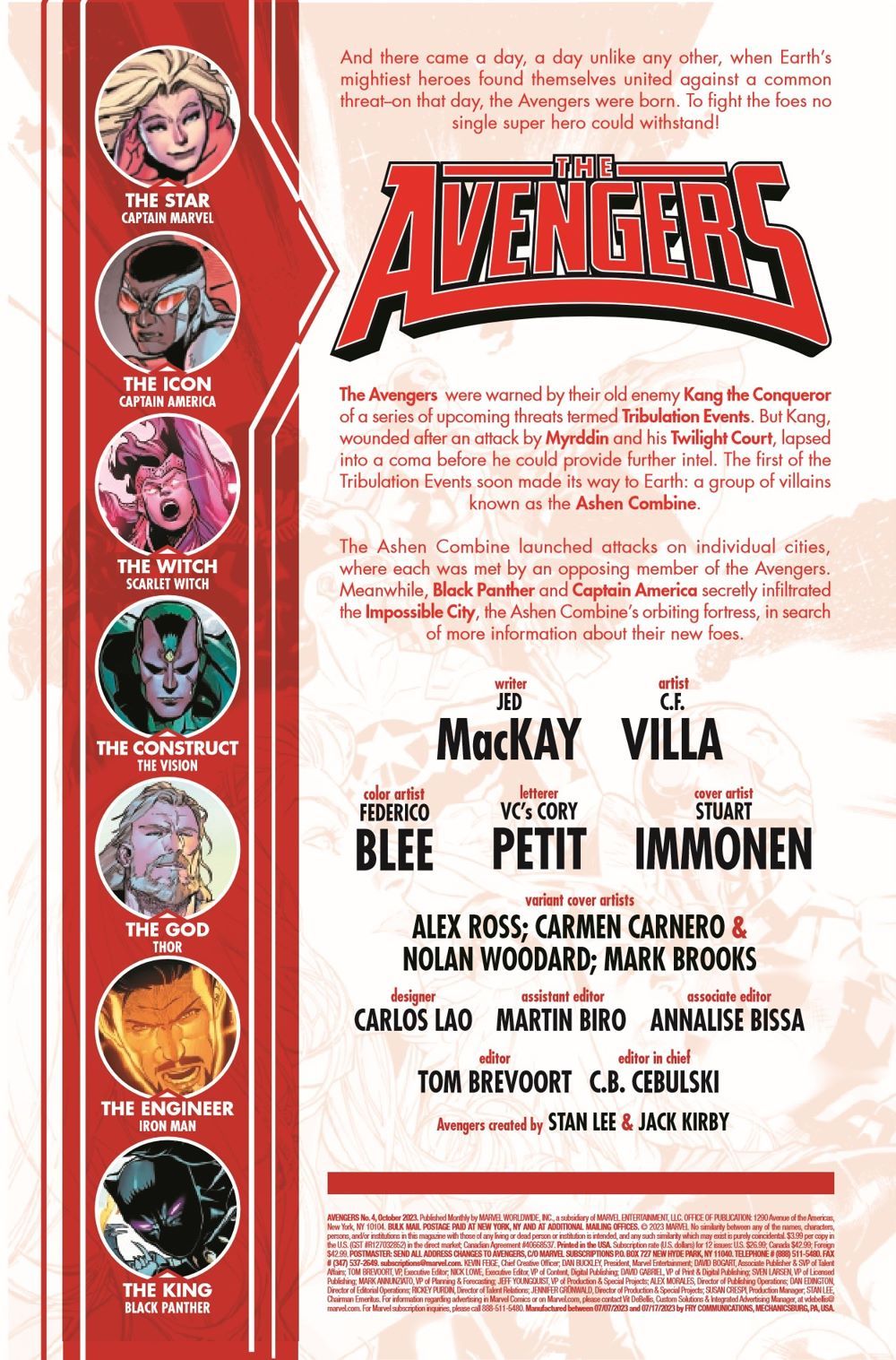 Battle is joined as the Avengers race to combat the Ashen Combine. But with Lord Ennui, the Citysmith, Idol Alabaster, the Dead and Meridian Diadem scattered across the planet, each with their own city for prey, have the Avengers spread themselves too thin? United, the Avengers stand. But divided...?