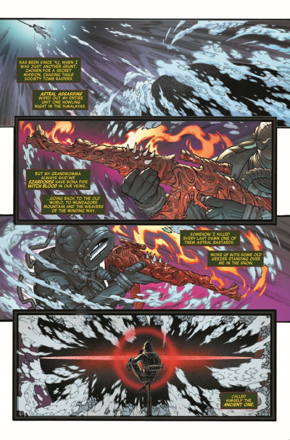 MEET HISTORY'S MIGHTIEST HEROES! The Avengers are lost in time, and if they're going to stop Mephisto's grand plan, they'll need help from some of history's greatest heroes, whose stories have never been told. Like the mystical man of war, Sgt. Szardos, Soldier Supreme of World War II, and his squadron of supernatural grunts, the Secret Invaders.