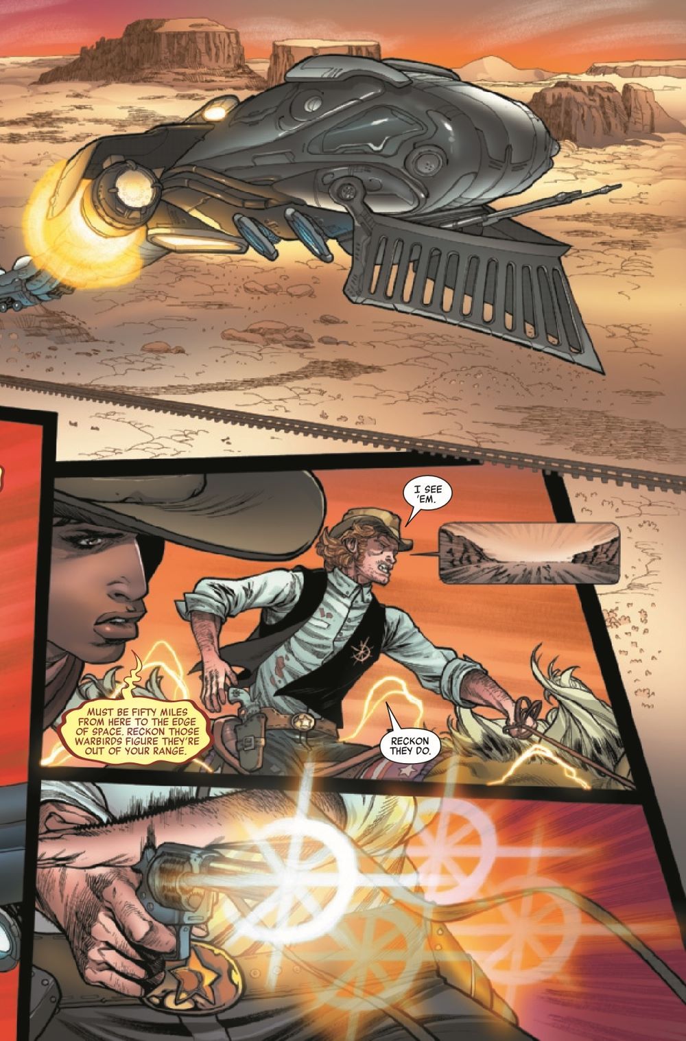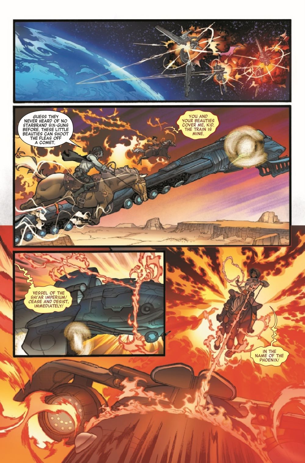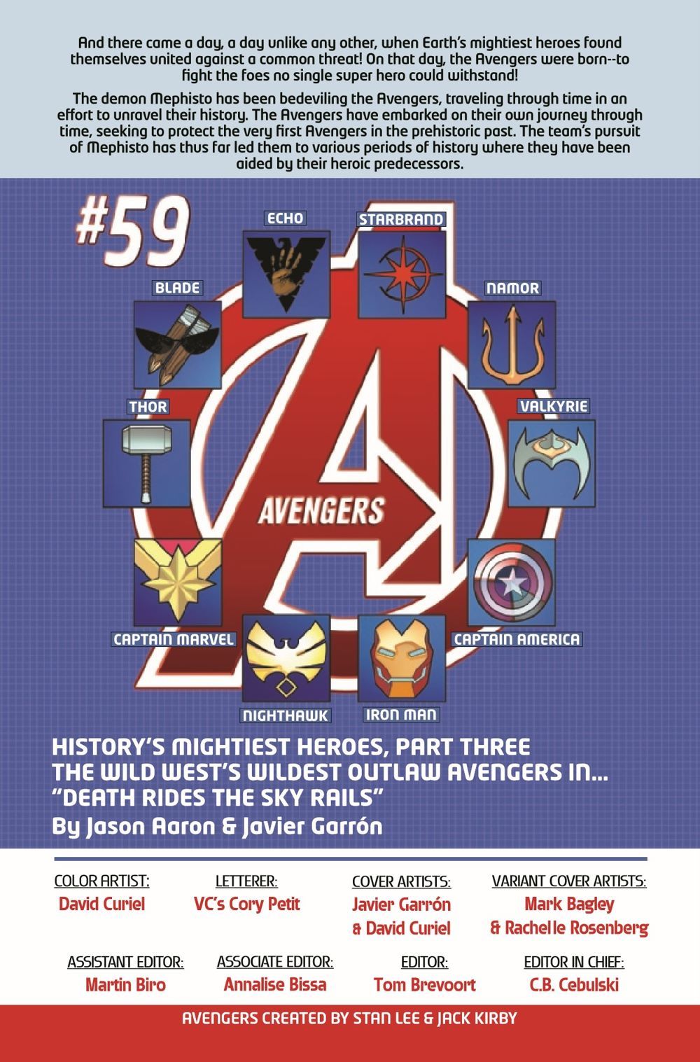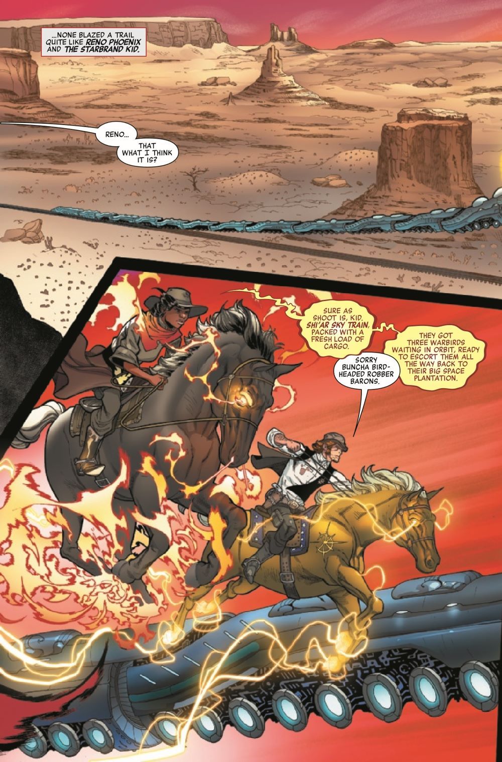 THE LEGEND OF RENO PHOENIX AND THE STARBRAND KID! The Avengers' journey through time brings them to the Old West, where they cross paths with a couple of History's Mightiest Heroes, whose six-guns are loaded with the greatest powers of the heavens. But is that enough to force a showdown with the forces of Mephisto? Or will the Avengers be lost in time forever?