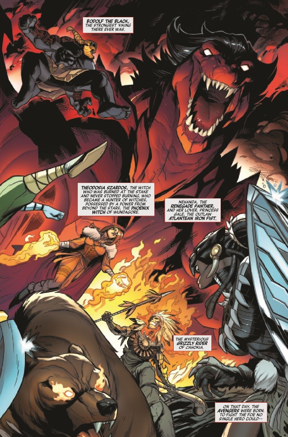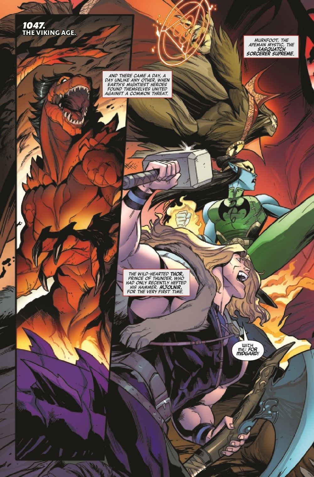 HISTORY'S MIGHTIEST UNTOLD SECRETS! If the Avengers hope to survive being lost in time, they'll need the help of some of history's greatest heroes, from the Thor of the Viking Age to the T. Rex Starbrand at the dawn of time, plus all the forgotten Avengers of bygone eras whose stories can finally be told.