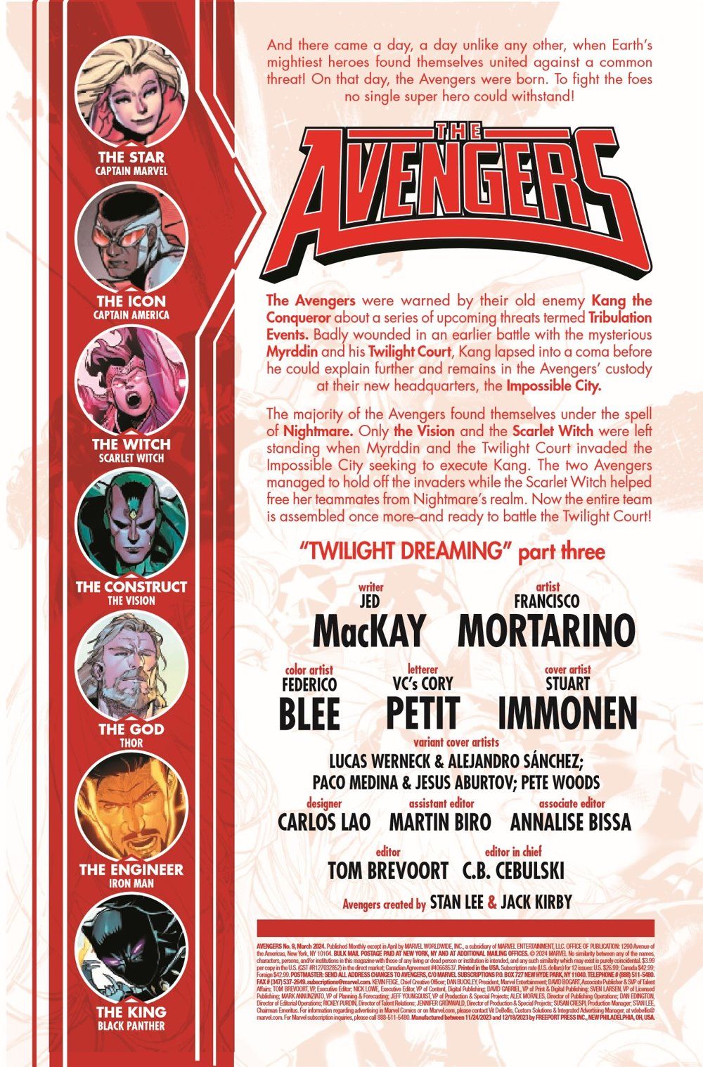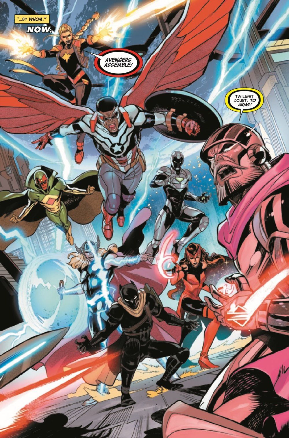The Avengers battle the Twilight Court...for the sake of Kang the Conqueror? The Twilight Court wishes to bring Kang to justice, but the Avengers still have need of the comatose conqueror. Which side can claim to truly be just?