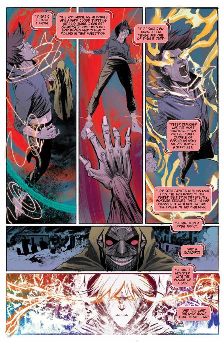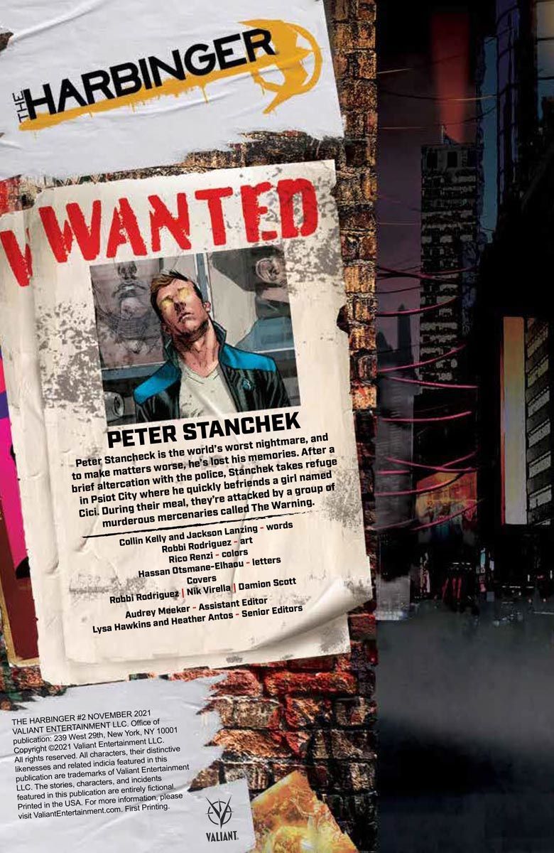 The Warning unleashed. When a young rebel is captured, will Peter join the fight to rescue him? A new era of Harbinger races forward with Robbi Rodriguez's eye-popping visuals.