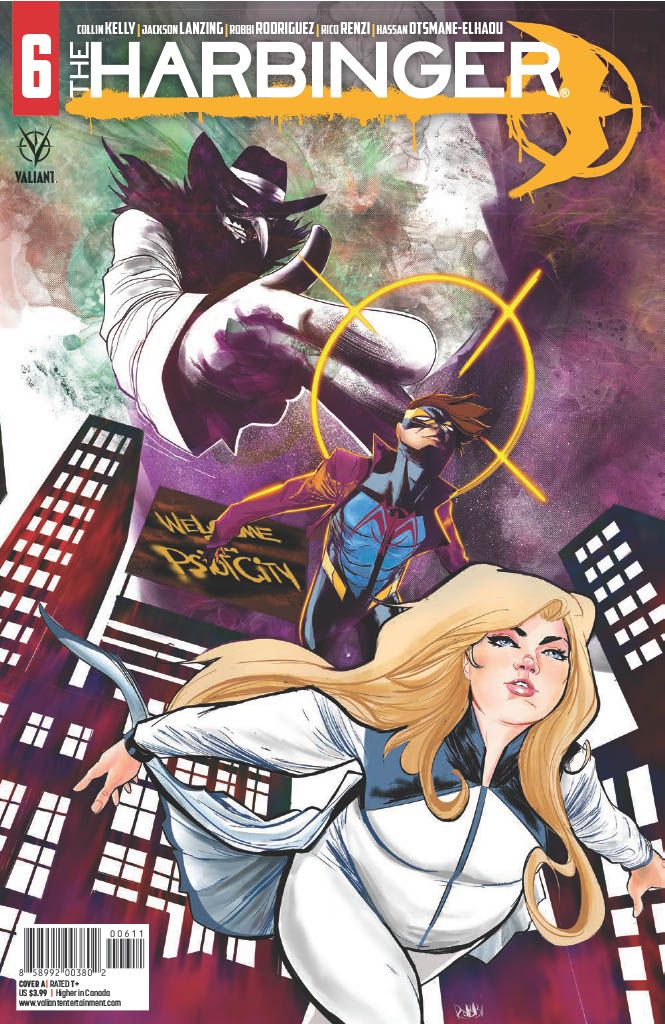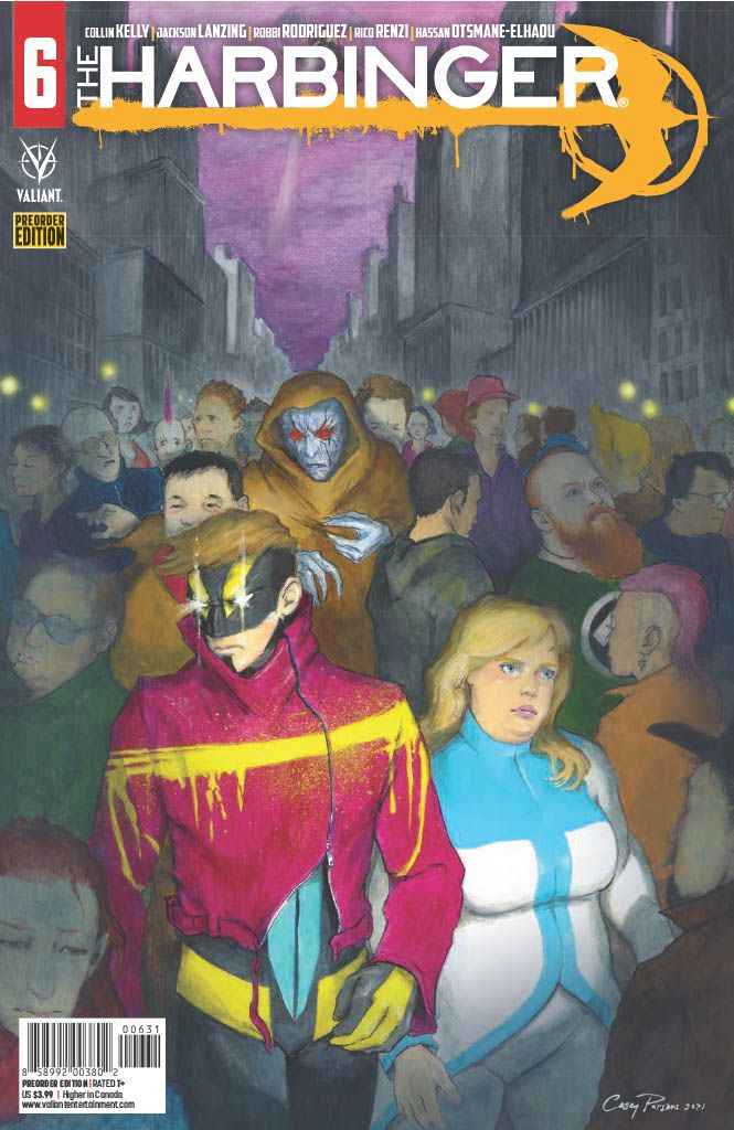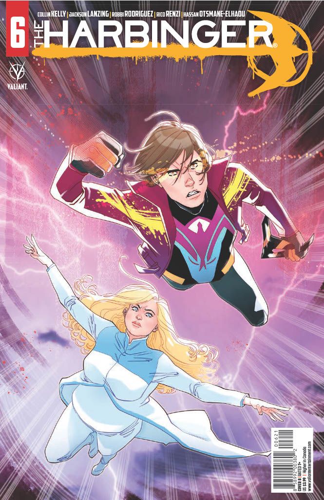 THE HARBINGER #6 is co-written by COLLIN KELLY and JACKSON LANZING (Captain America: Sentinel of Liberty, Batman Beyond: Neo Year), features art by ROBBI RODRIGUEZ (Spider-Gwen, Batgirl), colors by RICO RENZI (Mister Miracle: The Source of Freedom, The Unbeatable Squirrel Girl), letters by HASSAN OTSMANE-ELHAOU (X-O MANOWAR, The Blue Flame), and covers by ROBBI RODRIGUEZ,MARGUERITE SAUVAGE, and CASEY PARSONS.