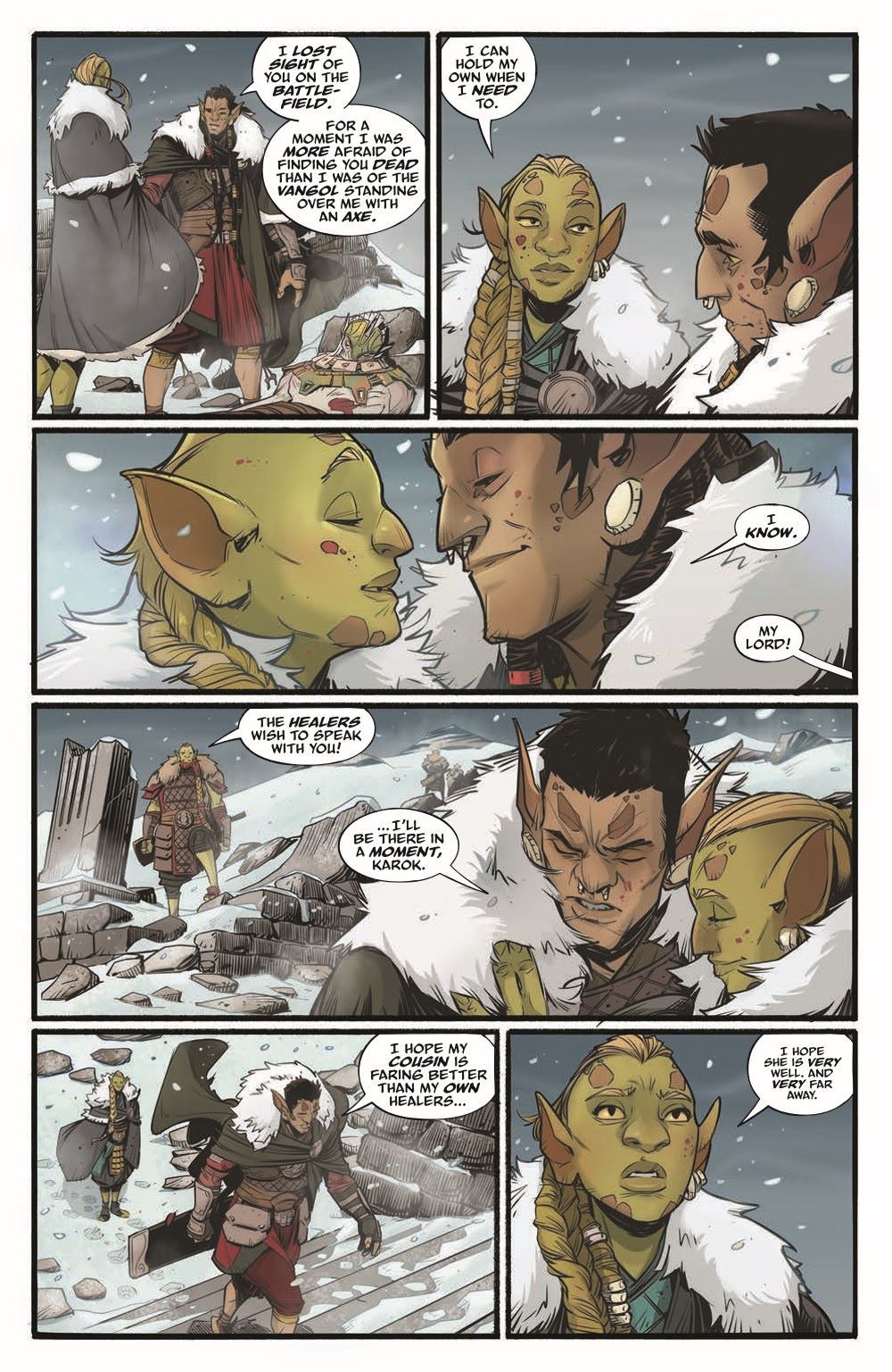 While humans and orcs mourn their losses and recover from battles on two fronts, all hope for their life-saving union could be lost after a tragic blunder causes Tara to question her post with the Last Men Standing. And her skills are tested again when a new threat stuns the company. As Tara and Callum ice each other out, things heat up in the snowy north when the war against the Vangol ignites a new spark between newlyweds Troth and Faran!