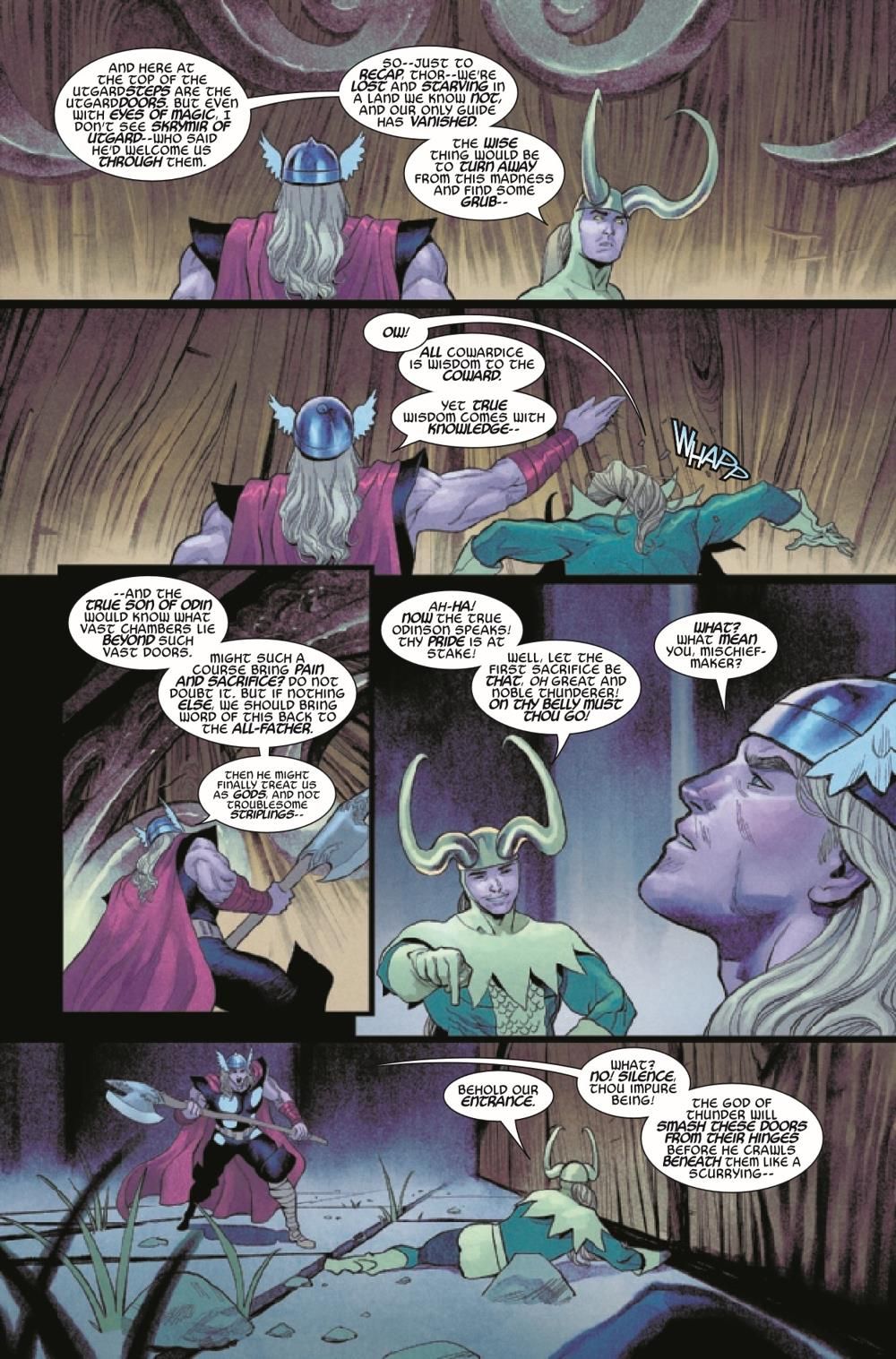 THE TRIALS OF UTGARD! Young Thor faced the tricks of the Utgard-Loki, with all that lived at stake - in a tale twice-told and now told again. Yet the teller was the Skald of Realms, in their aspect as Thor's enemy. And thus, the tale could twist upon itself - and if Thor faltered, it could make a new end. This is the story of the IMMORTAL THOR...and the story may yet destroy us all.