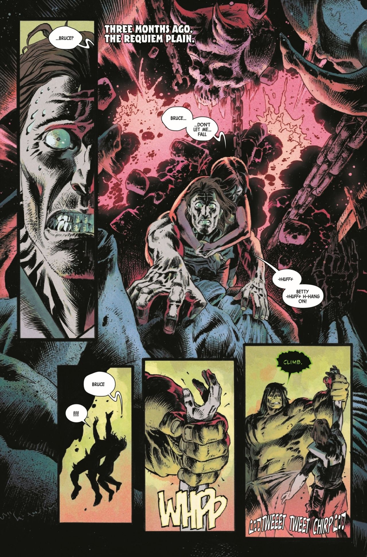 What happened to Bruce Banner in that cave? As the monsters' war on humanity rages across land and sea, Bruce Banner and Betty Ross have finally found their life of quiet normalcy, free from their past and the threat of the Infernal Hulk...or so they think. Is Banner really free? How long can they hide as the world burns down…and what happens when their nightmares find them? Guest-starring IRON MAN, the fate of Bruce Banner is revealed in this pivotal issue! RATED PARENTAL ADVISORY.