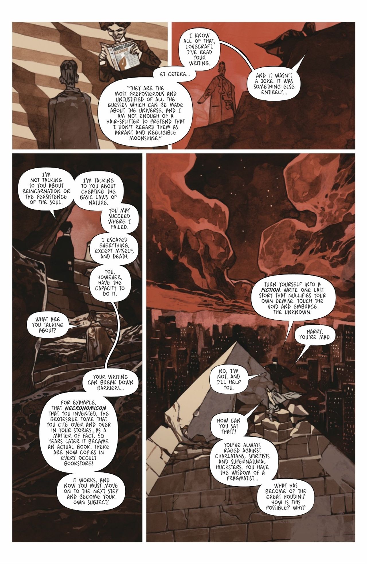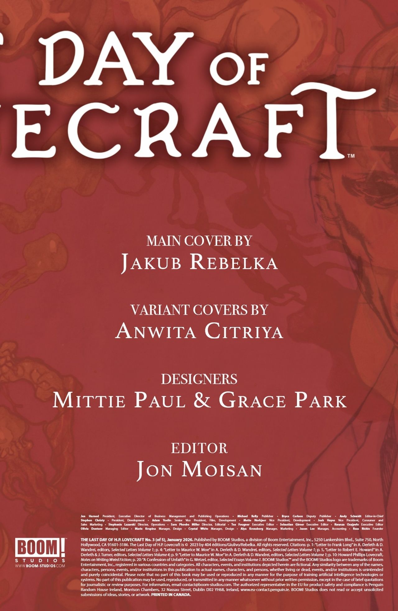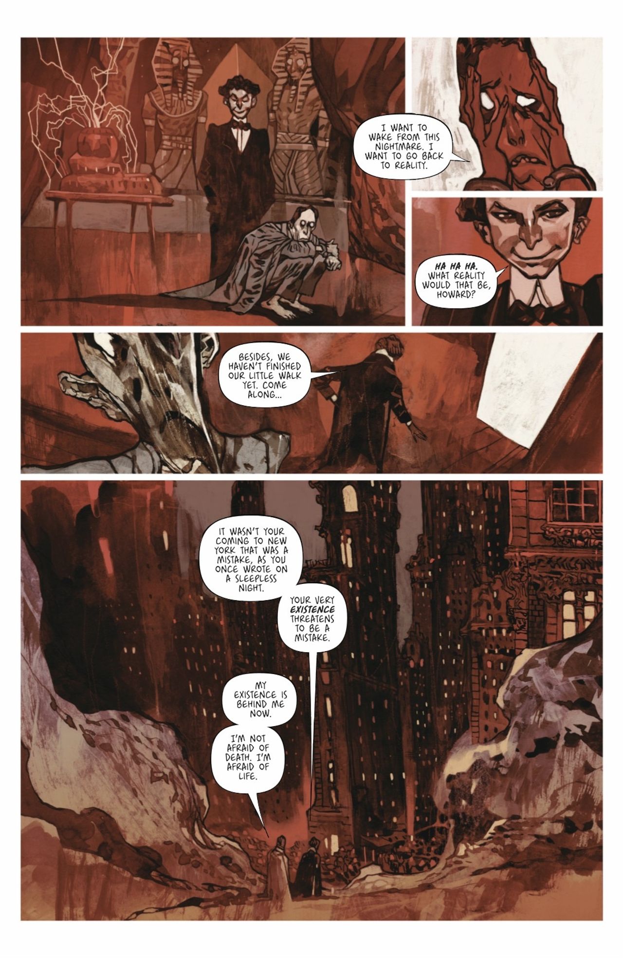 The nightmarish journey continues in the third installment of Romuald Giulivo and Jakub Rebelka's acclaimed graphic novel! What lurks in the darkest parts of H.P. Lovecraft's mind? Continue the descent into the final hours of the infamous writer's life as he spirals into wicked new depths of his psyche.