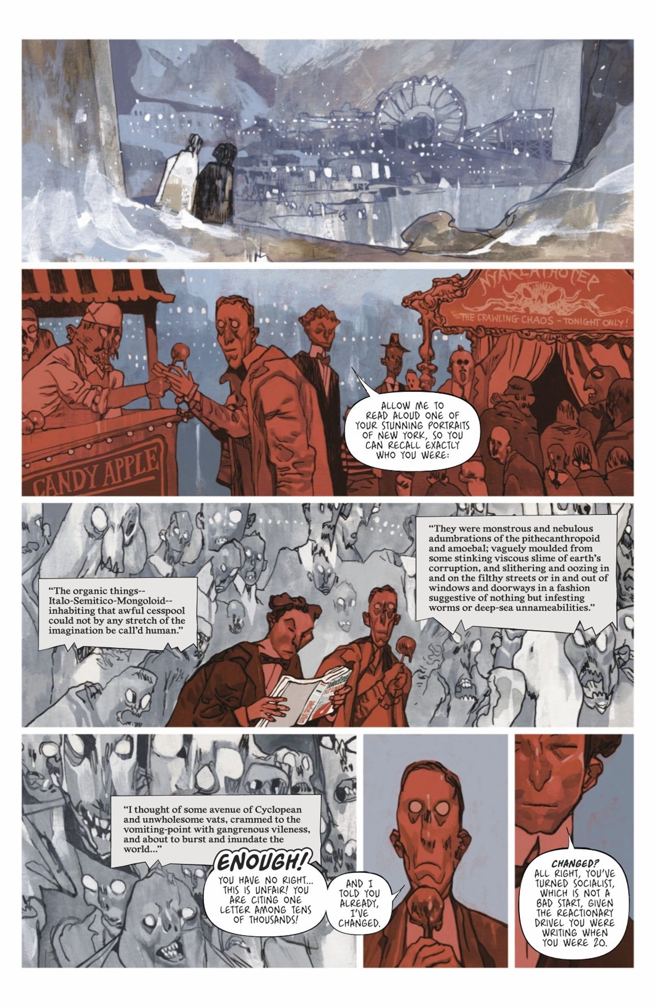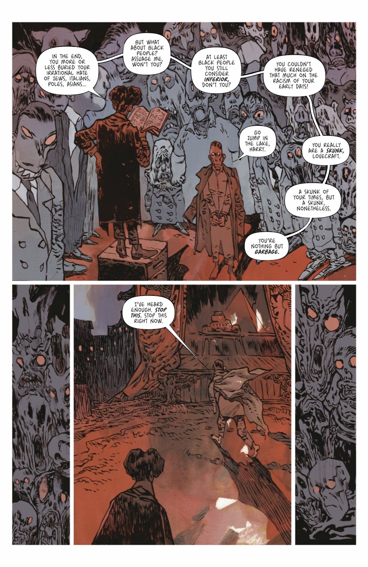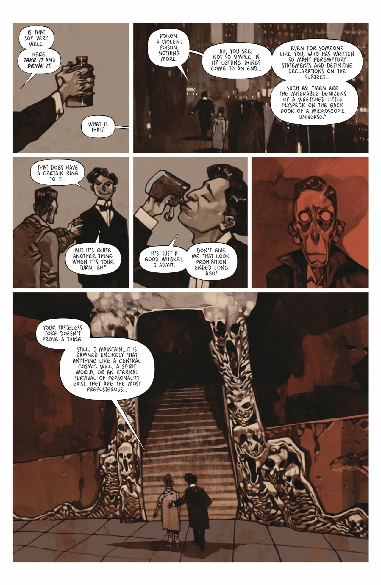 The nightmarish journey continues in the third installment of Romuald Giulivo and Jakub Rebelka's acclaimed graphic novel! What lurks in the darkest parts of H.P. Lovecraft's mind? Continue the descent into the final hours of the infamous writer's life as he spirals into wicked new depths of his psyche.