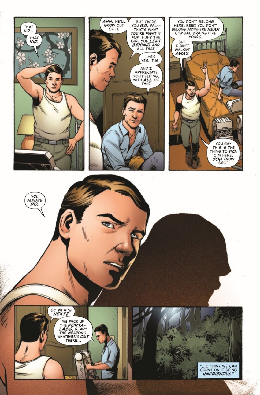 In the jungles of Southeast Asia, in the days before the Fantastic Four...Reed Richards and Ben Grimm are on a secret government mission - hunting monsters! And what they find will shape the world to come in ways they can't even guess at. This issue exposes the secrets (well, some of them) behind this sweeping new series! Also featuring the Winter Soldier, the Red Guardian, Warlord Kro of the Deviants, the Shi'ar and more! (And when we say "more," we're not kidding!)