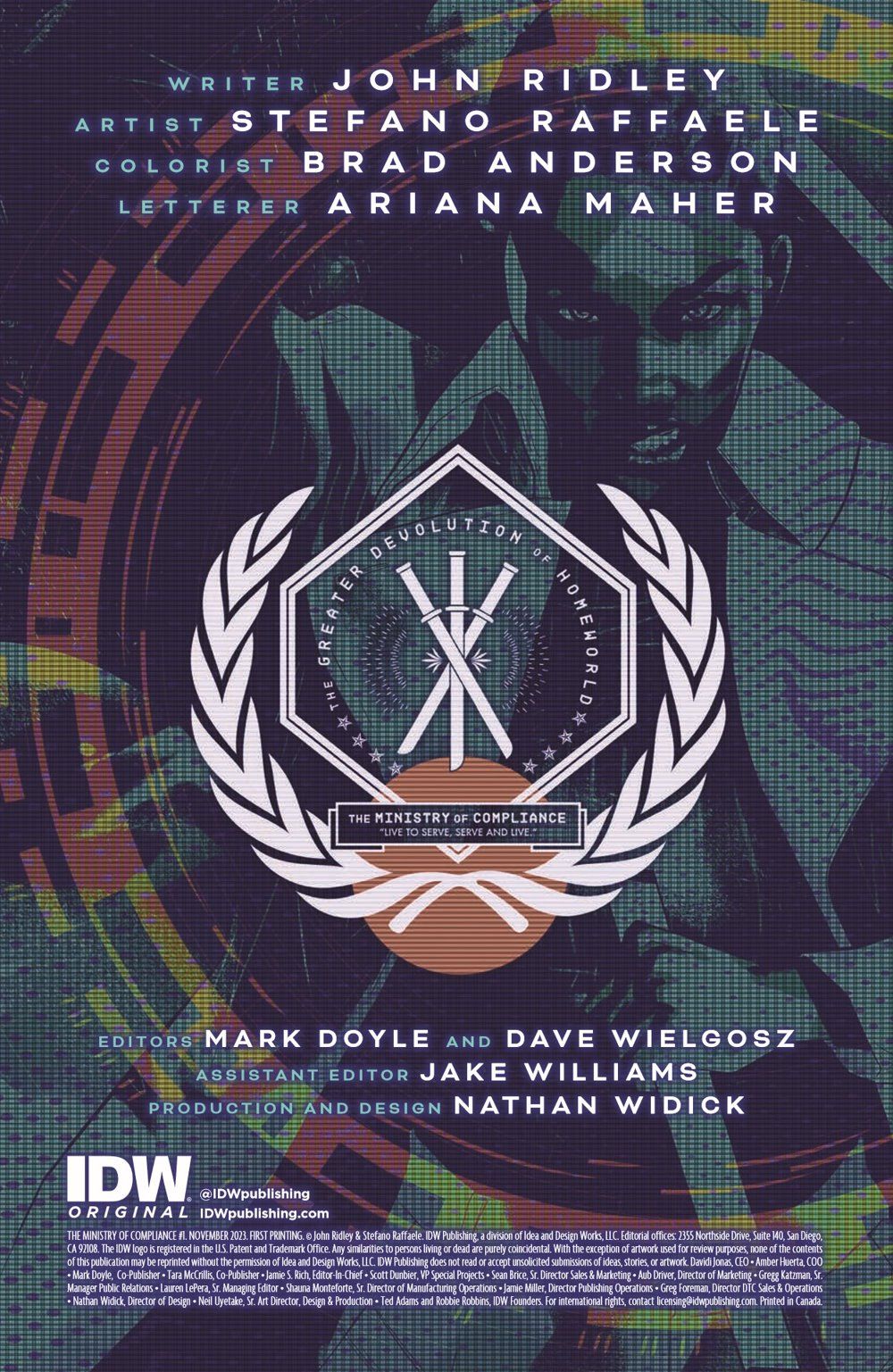 Eisner Award-nominated comic book writer John Ridley (The Other History of the DC Universe, I Am Batman) delivers a bold, new vision of science fiction with THE MINISTRY OF COMPLIANCE. Thirty-seven years ago, Earth was secretly invaded by an alien force known as the Devolution, and they have been shaping the direction humanity has been going in ever since to prepare us to be assimilated into their empire.