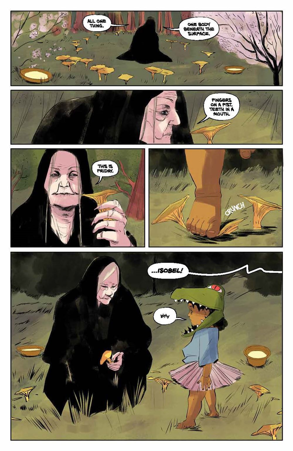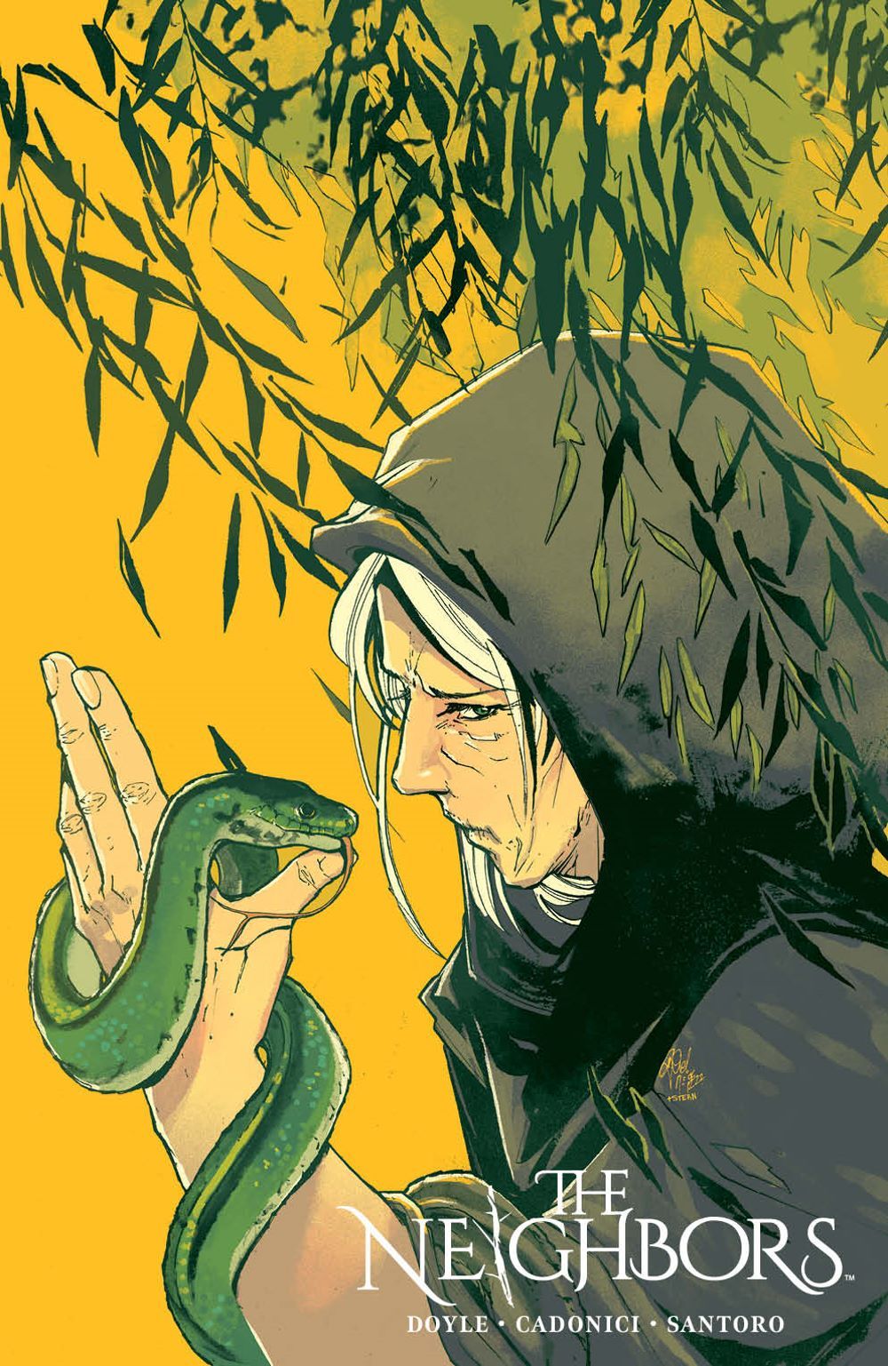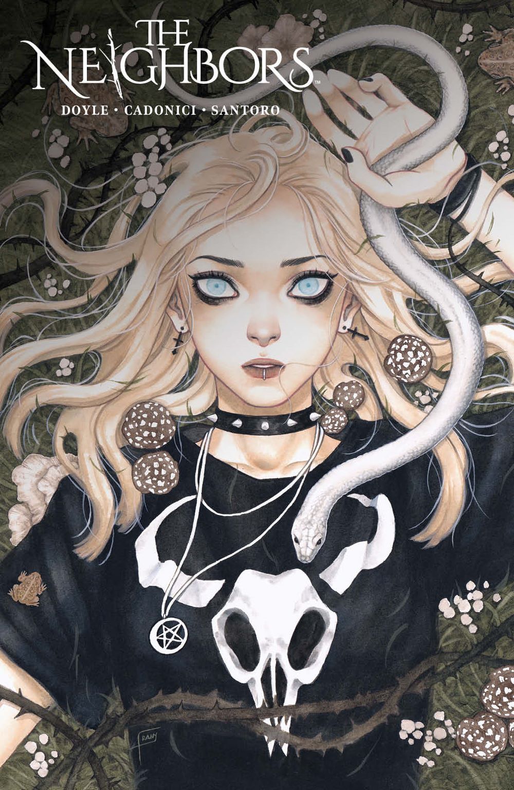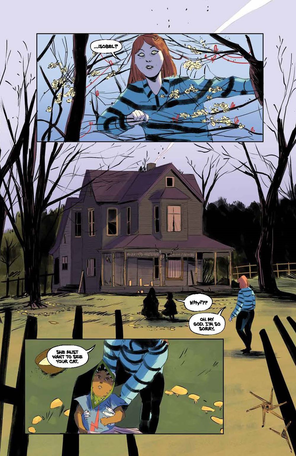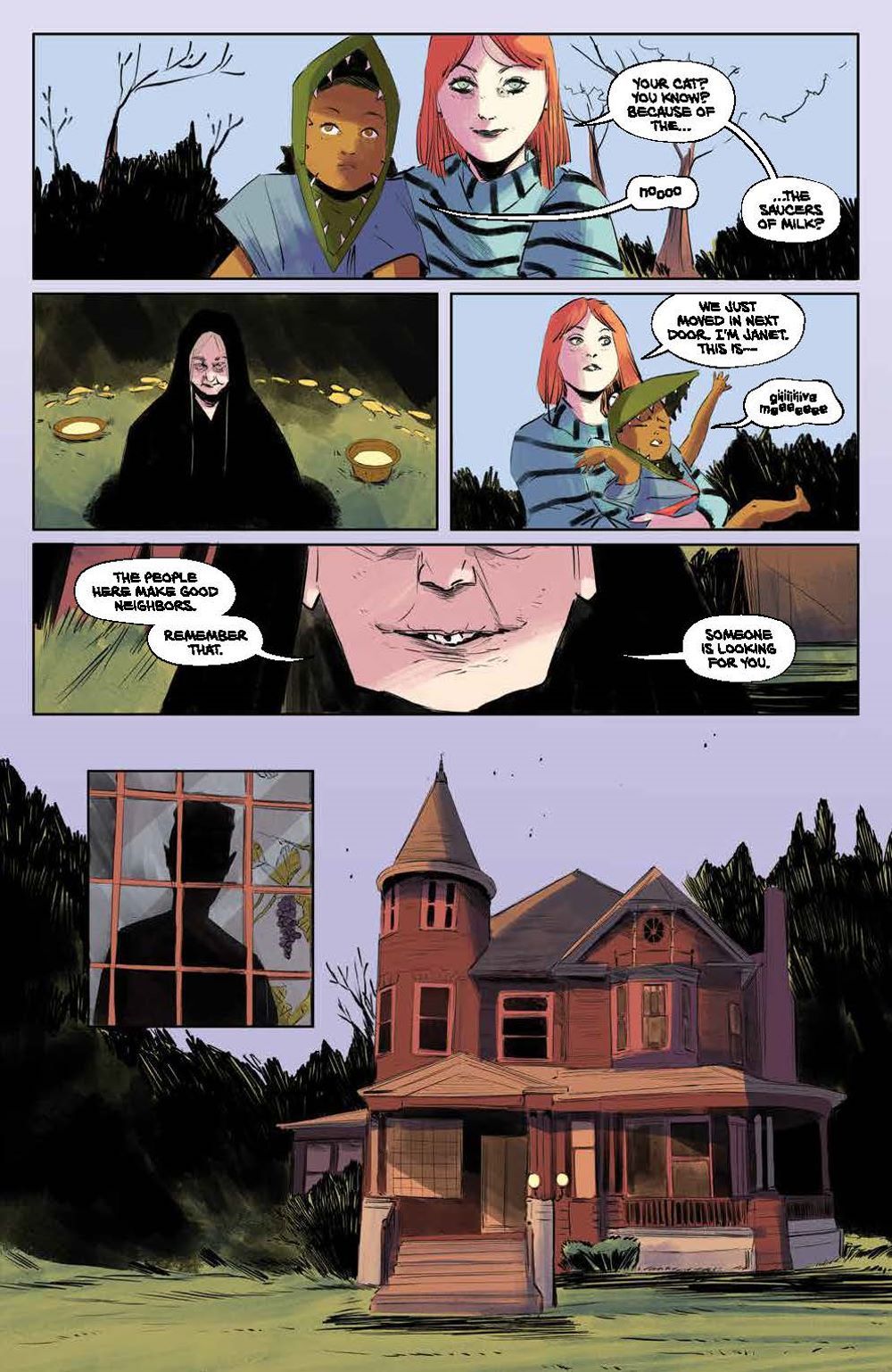 NEW SERIES. When Janet and Oliver Gowdie move to a quaint mountain town, their daughter Casey becomes part of a horrific chain of events revealing that their neighbors are anything but what they seem. Soon an unsettling old woman named Agnes Early fixates on Janet and Oliver's other daughter–2-year-old Isobel. It becomes clear that it's impossible to know who to trust… or who is even still human… Steeped in Irish and English folklore and mythology, Jude Ellison S. Doyle (Maw) joins artist Letizia Cadonici (House of Slaughter), and colorist Alessandro Santoro (Bloom) to tread new ground in changeling horror. A tale perfect for fans of Eat the Rich and The Nice House on the Lake!