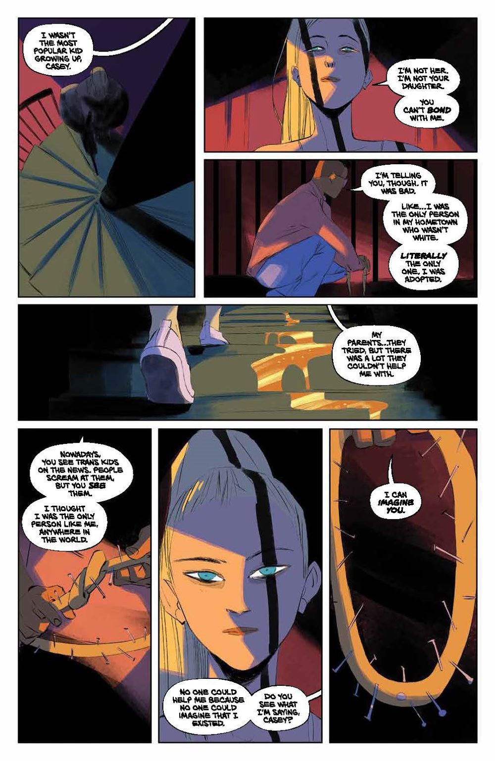 FINAL ISSUE. The FINAL ISSUE of the changeling folk horror story from acclaimed author Jude Ellison S. Doyle! Cunnanock, a town determined to tear the Gowdie family apart, can no longer hide the evil force behind the horror. As the Gowdies come face-to-face with it, the true details of Oliver's trauma comes to light, while Casey becomes even more erratic and dangerous. Will help from an unexpected source be enough to save their family?