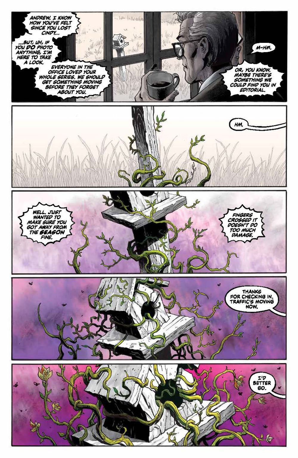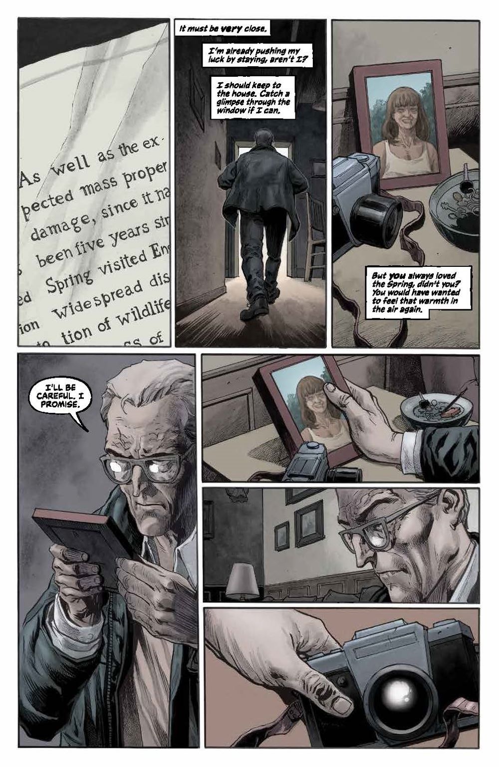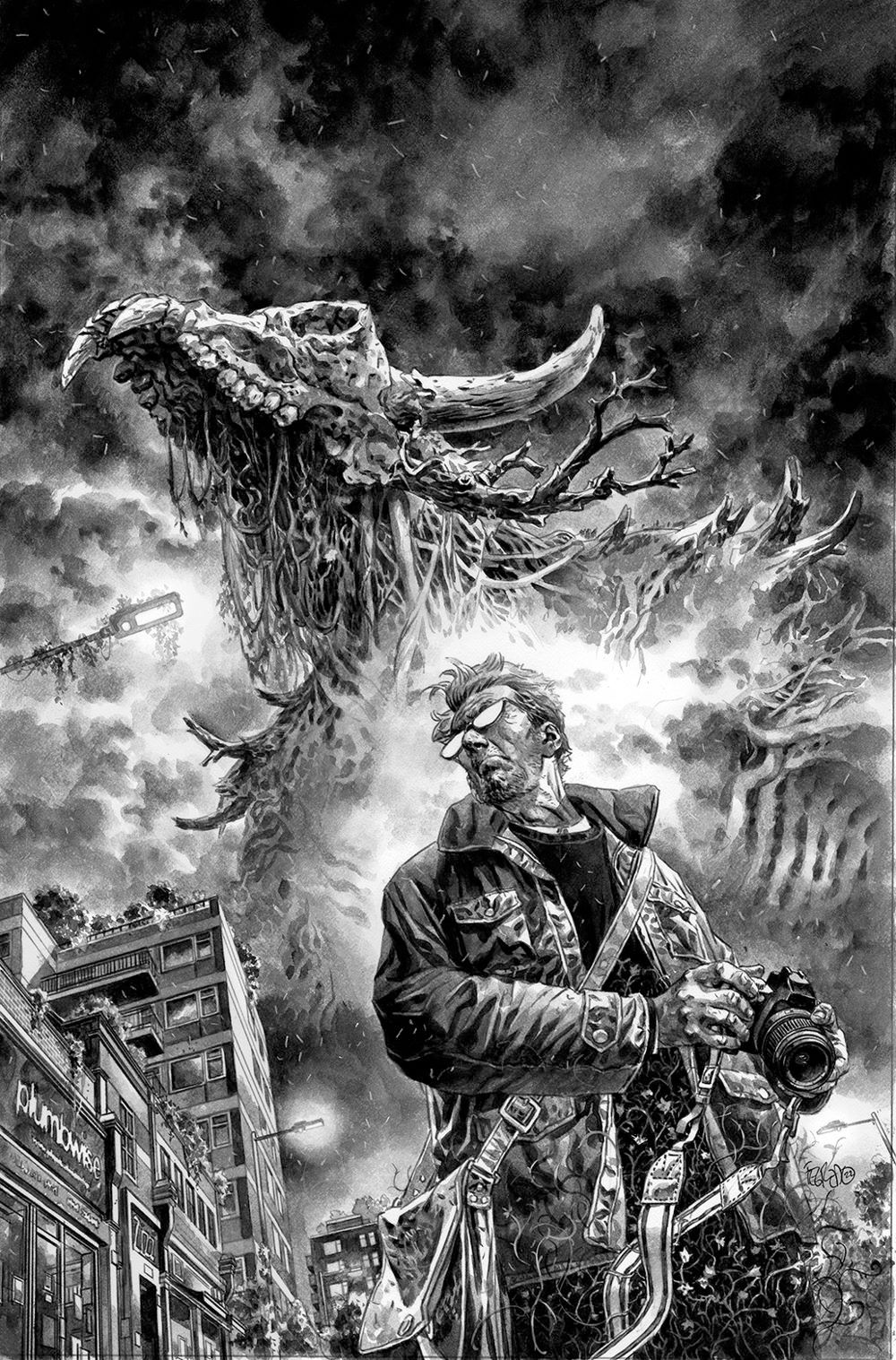 NEW SERIES. In a drab, colorless world, the seasons bring change… and also destruction. Andrew, a retired conflict photographer, lives a life steeped in regret after an unthinkable tragedy, but everything shifts when the seasons arrive–each one a personified, god-like creature. As he risks everything to track down Spring, Summer, Autumn, and Winter, will capturing the perfect picture of each be enough to find redemption… and ultimately bring color back to his world? Dan Watters of Sword of Azrael and Home Sick Pilots writing acclaim is joined by artist Sebastian Cabrol (Anthony Bourdain's Hungry Ghosts, Maestro: World War M) for a tale that is both down to earth and supernaturally apocalyptic in its pertinence.