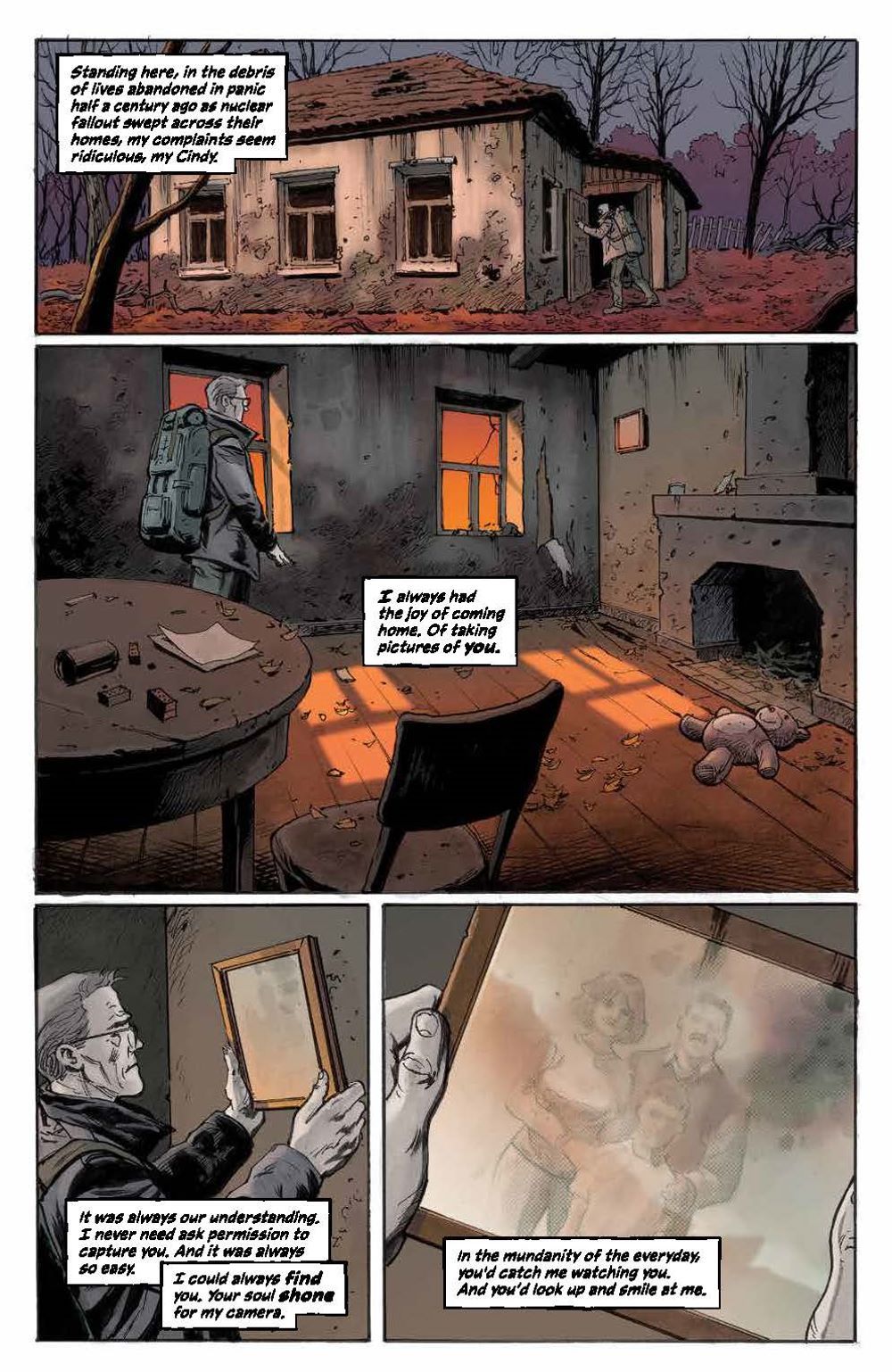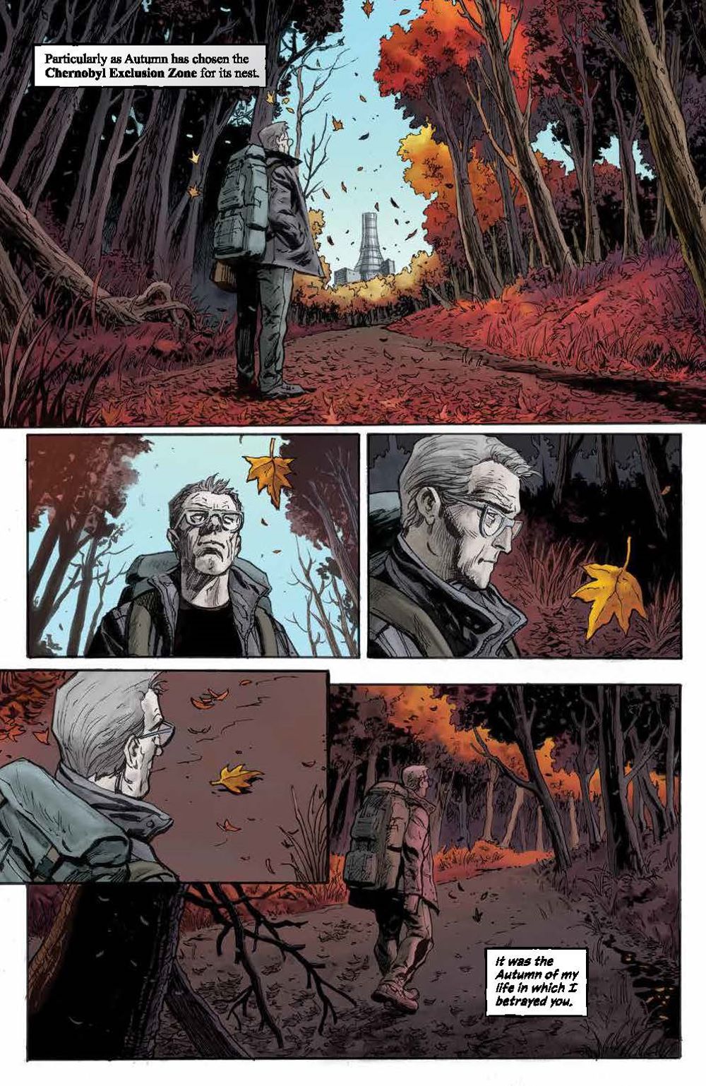 While the Summer photos are a sensation, Autumn is a different beast altogether, and not just because the stationary lair of decay takes up the entirety of the Chernobyl Exclusion Zone, threatening another meltdown. It's the time of guilt for Andrew, where his life started to wither as well, but can it do any more harm in the present than it has in the past? Readers will find out in the thrilling and timely penultimate issue before winter and the grand finale arrives!