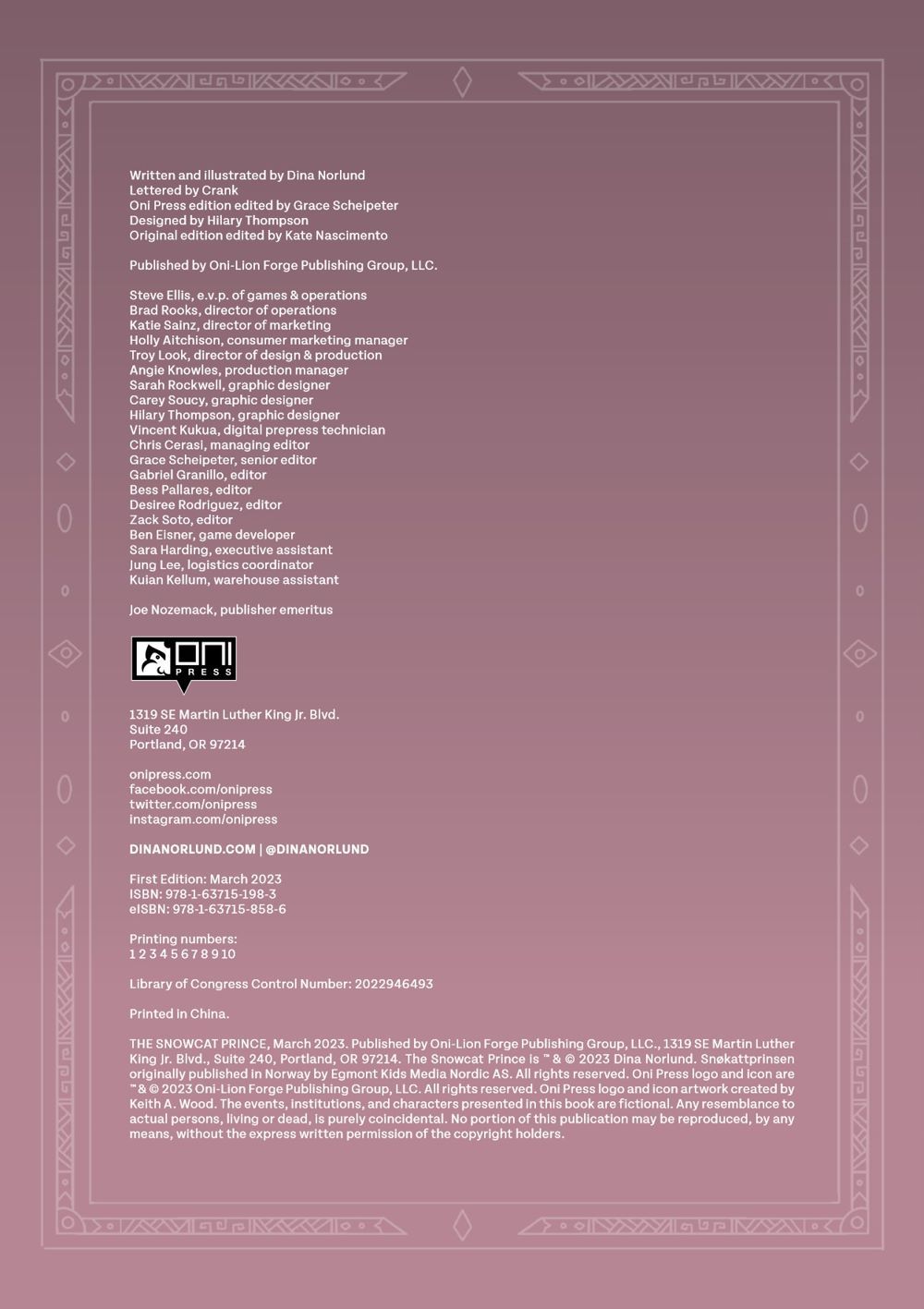 It is with great sadness that we share the passing of beloved Norwegian author and illustrator Dina Norlund, creator of The Snowcat Prince, after a long illness. The Oni family sends heartfelt condolences to Dina’s family and loved ones. With works including Wild, Sprout, Greylegs, and Fern & The Moon Rabbit, Dina was an immensely talented storyteller and an inspiration for aspiring artists around the world who turned to her YouTube channel for drawing tutorials and encouragement. Our hope is to continue to celebrate Dina's legacy through her work.