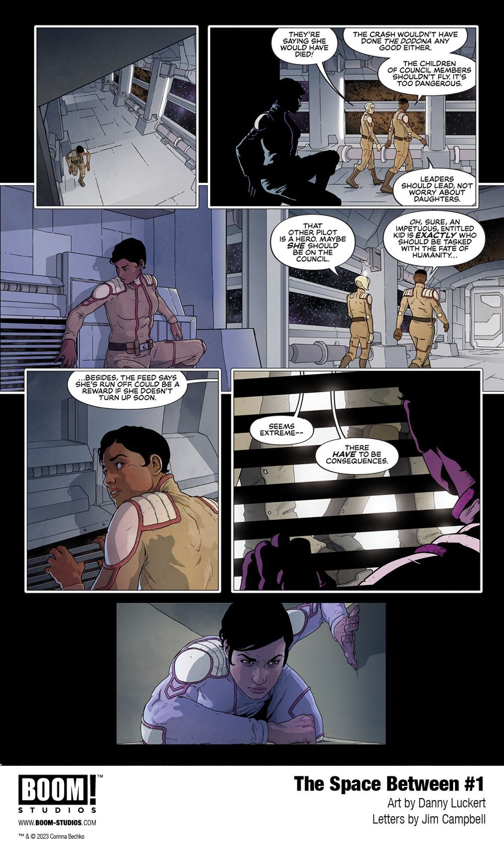 NEW SERIES. A multi-generation spanning interstellar sci-fi tale for fans of We Only Find Them When They’re Dead! Aboard the interstellar ark known as the Dodona, the populations of workers live in strictly separated social castes during the journey that will take multiple generations to complete. But everything changes when a pilot from the upper tier named Revla falls to the lower levels and meets Les, and they must risk everything for not just themselves, but all aboard the Dodona! Each issue in the limited series features a new pair of protagonists and a new generation of humanity in a sci-fi epic of love, survival, and liberation from Hugo and Eisner Award-nominated and New York Times bestselling writer Corinna Bechko (The Expanse, Green Lantern: Earth One) and acclaimed comics artist Danny Luckert (Ghostlore, The Red Mother).