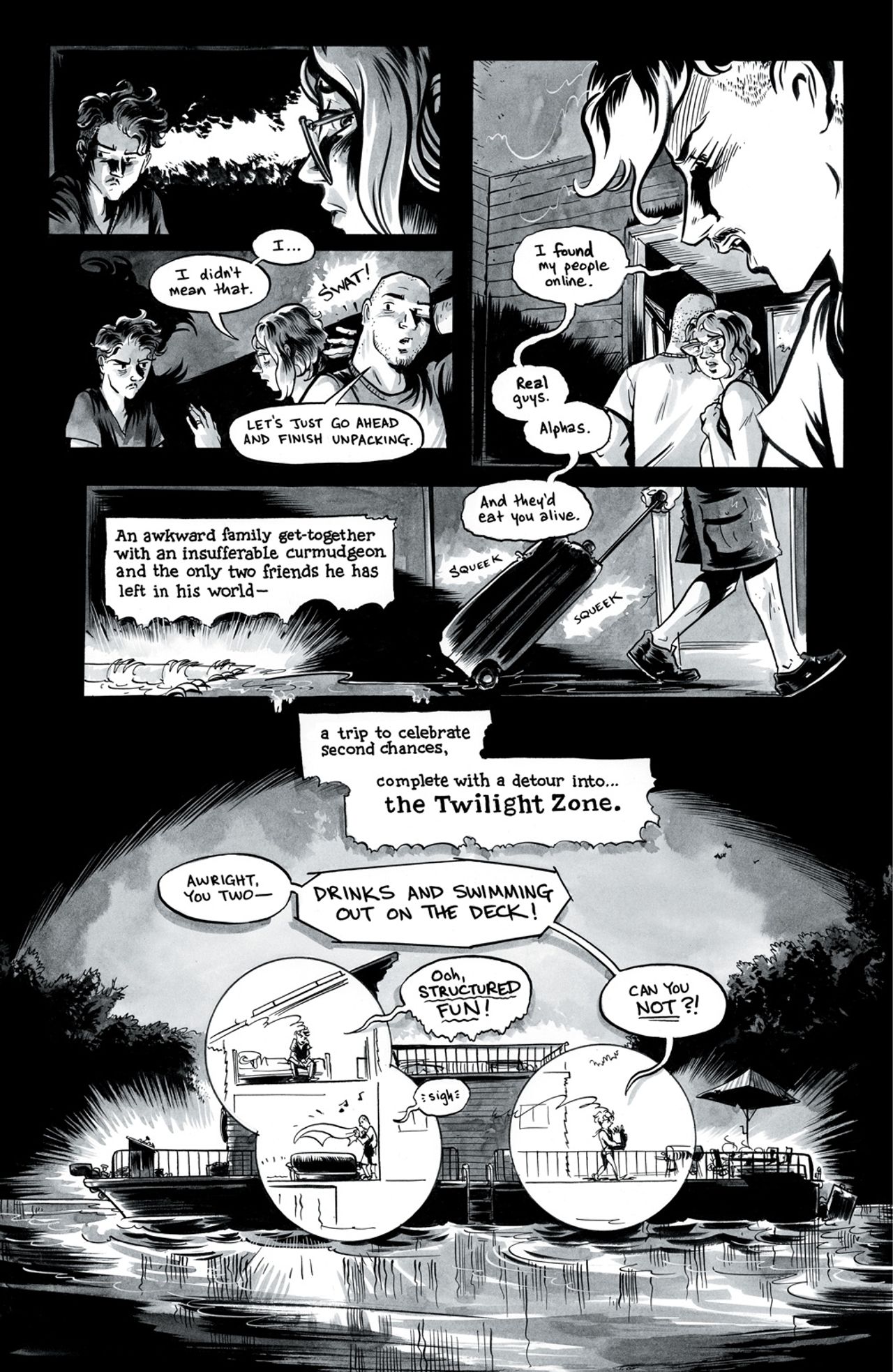 This all-new Twilight Zone anthology series continues with standalone stories by some of the best creators in comics today! Each issue is a fresh tale in the vein of the iconic original television series that's captivated audiences for over 60 years. And like the show, these stories will be revealed in terrifying black and white! THIS ISSUE: The scene is set. A beautiful lake in summer, a houseboat for the weekend. When Laura takes her abrasive brother, Chet, on a birthday vacation, their relationship is already wobbling on its last leg. A loving sister and her devoted boyfriend will trydesperately and one final timeto salvage a relationship with a once-loving little brother now grown to be a hateful young man. But when all three are plunged into worlds of their deepest desires, will they even want to find each other once again? National Book Awardwinning cartoonist Nate Powell (the March trilogy, Swallow Me Whole) serves as your guide into the Twilight Zone in this can't-miss issue!