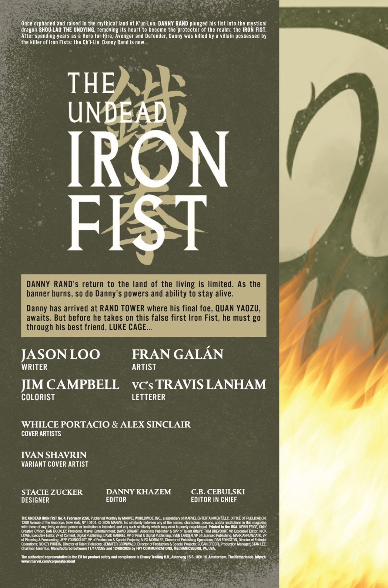 THE FINAL FACE-OFF! The truth stands revealed as DANNY RAND must face off against a man he once saved… The false prophet, the "first" Iron Fist, makes his return. Goodbye, Danny Rand.
