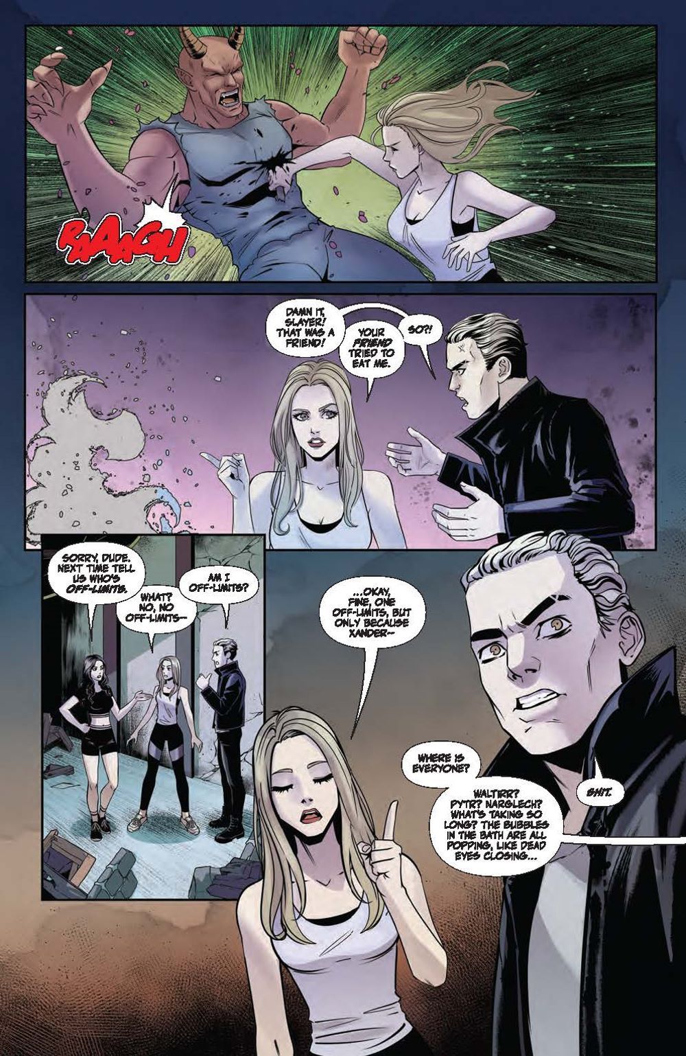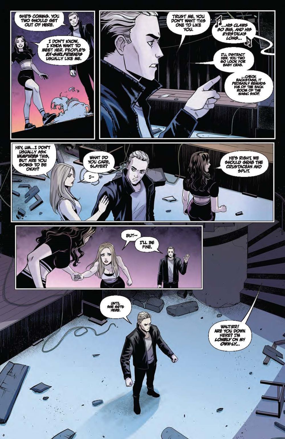 Buffy's relationship with Giles remains strained, but they work together to repair things as Buffy is determined to take back her identity as The Slayer! Meanwhile, Willow gets a better handle on her immense power, and just in time… as the Crab God grows in power from its infantile form…