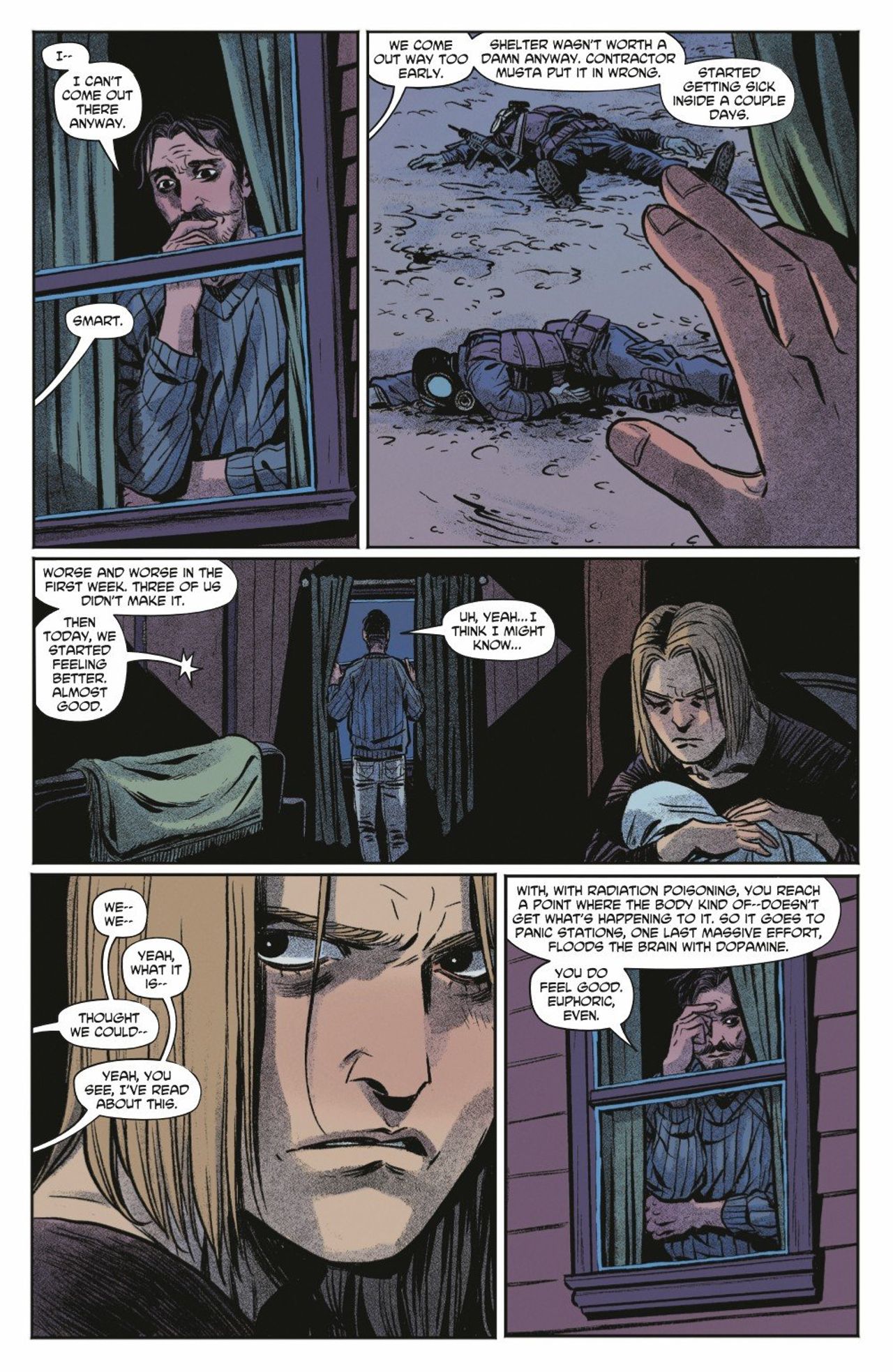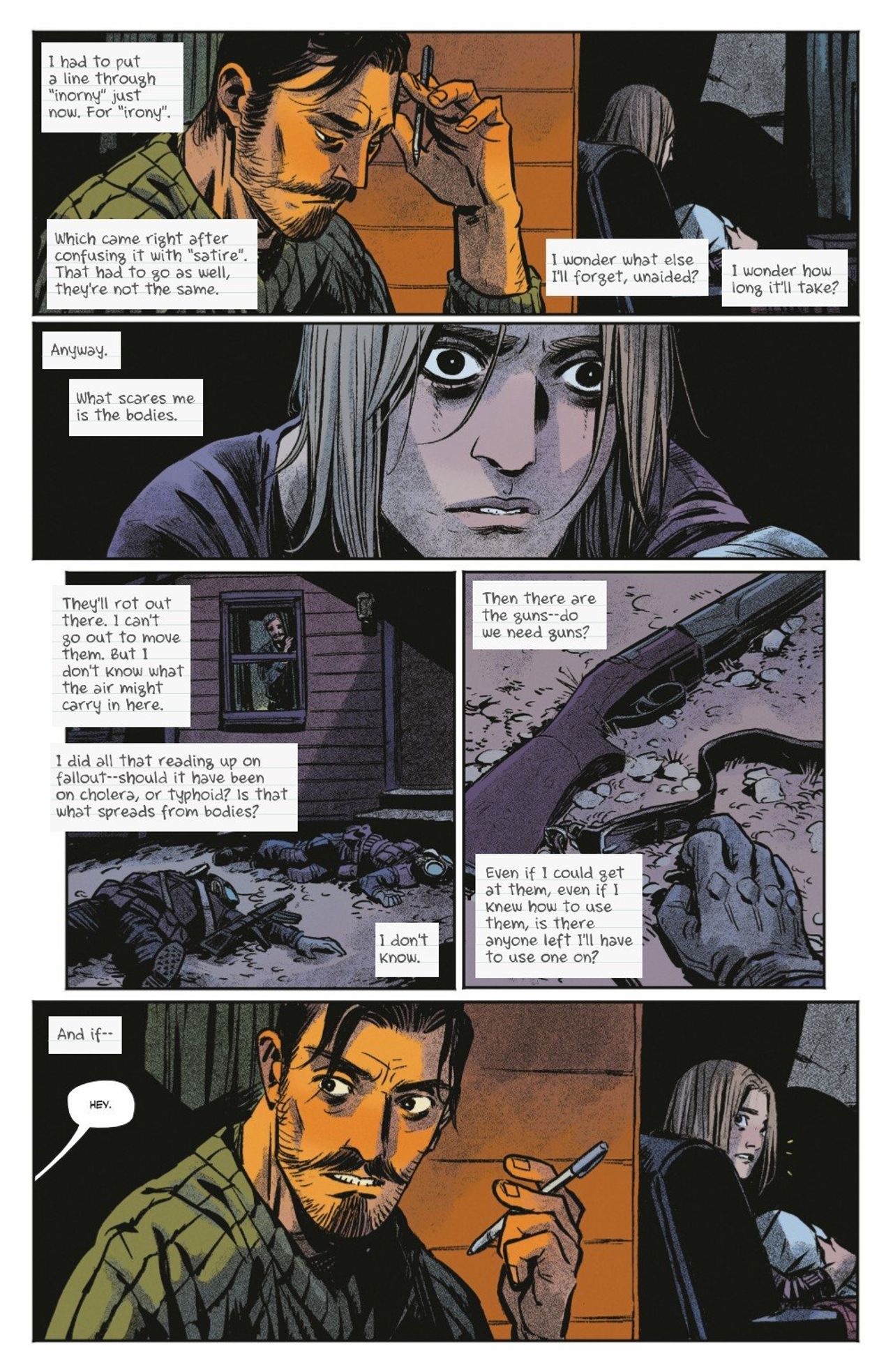 As society continues to collapse around their remote hideaway, the couple's isolated struggle reaches its tragic end. As David's fractured journal entries reveal regretful reflections on life before the war, Nikki's will to live begins to fade after she gives birth–her worst nightmares turning into reality.