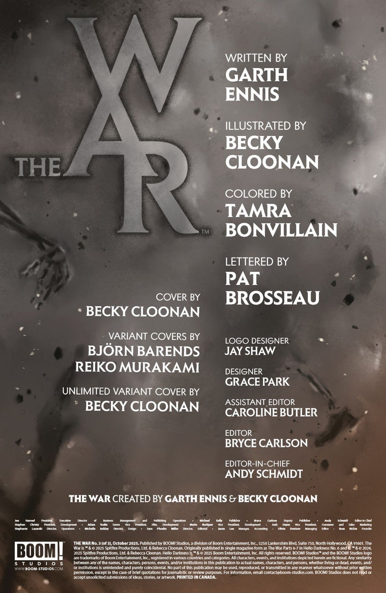 Collecting parts #4–6 of "The War" from acclaimed horror anthology Hello Darkness, Garth Ennis and Becky Cloonan deliver the devastating final chapter in Part Three of this unflinching vision of a dystopian future and the limits of survival.
