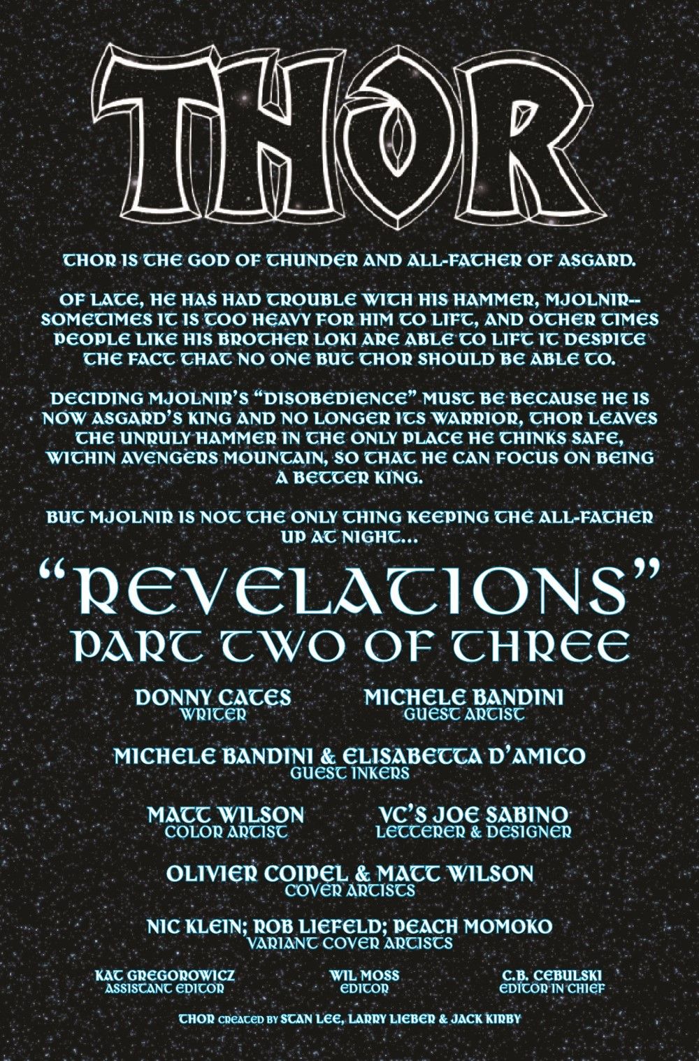 "REVELATIONS" PART 2 OF 3! Thor has only known two things, being a warrior and wielding a hammer. But he is realizing that in order to be the best ruler of Asgard that he can be, he must give up those two things. Who is Thor without them? And hostilities between Thor and Odin reach a boiling point as "Revelations" continues to uproot Thor's entire world!