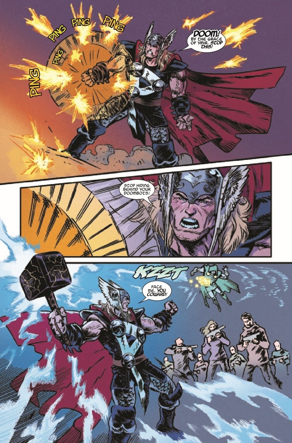 All roads lead to…Doom! The time storm threatens all of existence past, present and future! While Doctor Doom hunts for Bor's weapon, which will allow him to claim Latveria, Earth and the whole of the universe as his own, Thor and Jane Foster hunt for Doom — deep in the past. But what IS the weapon Bor created? And with Doom hell-bent on controlling free will itself, what does that spell for Thor's sister Laussa, trapped in time between the present and the future?