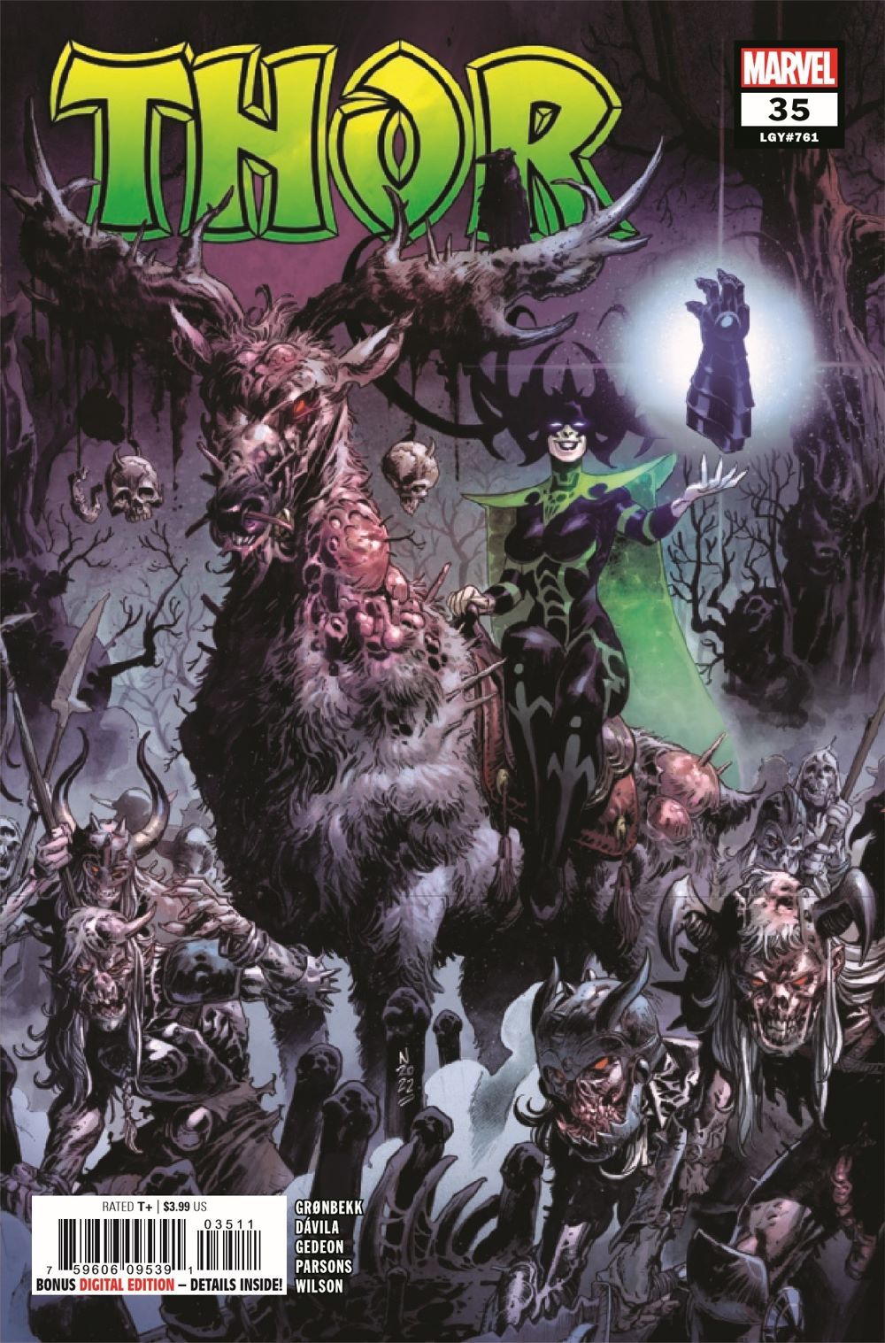 THE MIDGARD-SHATTERING FINALE OF "BLOOD OF THE FATHERS"! Doctor Doom makes his final stand to control all of humankind - past, present and future! Thor must defeat him before the course of history and the future of the Ten Realms are irrevocably altere - -but taming a force powerful enough to destroy free will itself might prove to be a greater challenge than Thor could have imagined… Plus, the mysterious origin of Hela is finally revealed!