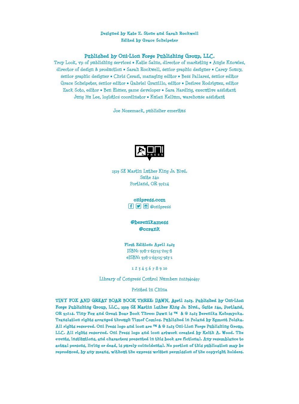 Tiny Fox and Great Boar face new challenges bravely and fiercely in volume three of this beautifully illustrated and charming comic for early readers by award-winning Polish cartoonist Berenika Kolomycka.
