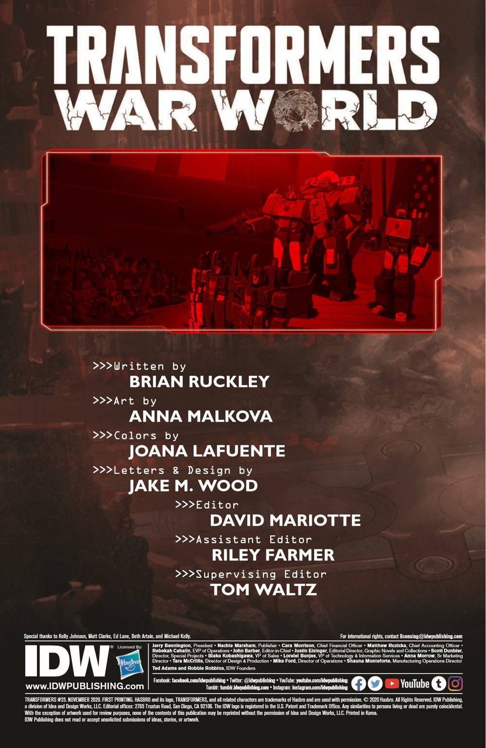 "War World" begins here! It's all led up to this. With Megatron making his play for Cybertron, Ironhide, Chromia, and Hound launch an operation to free those he has imprisoned. The future of Cybertron rests in uncertain hands in this double-sized, action-packed issue!