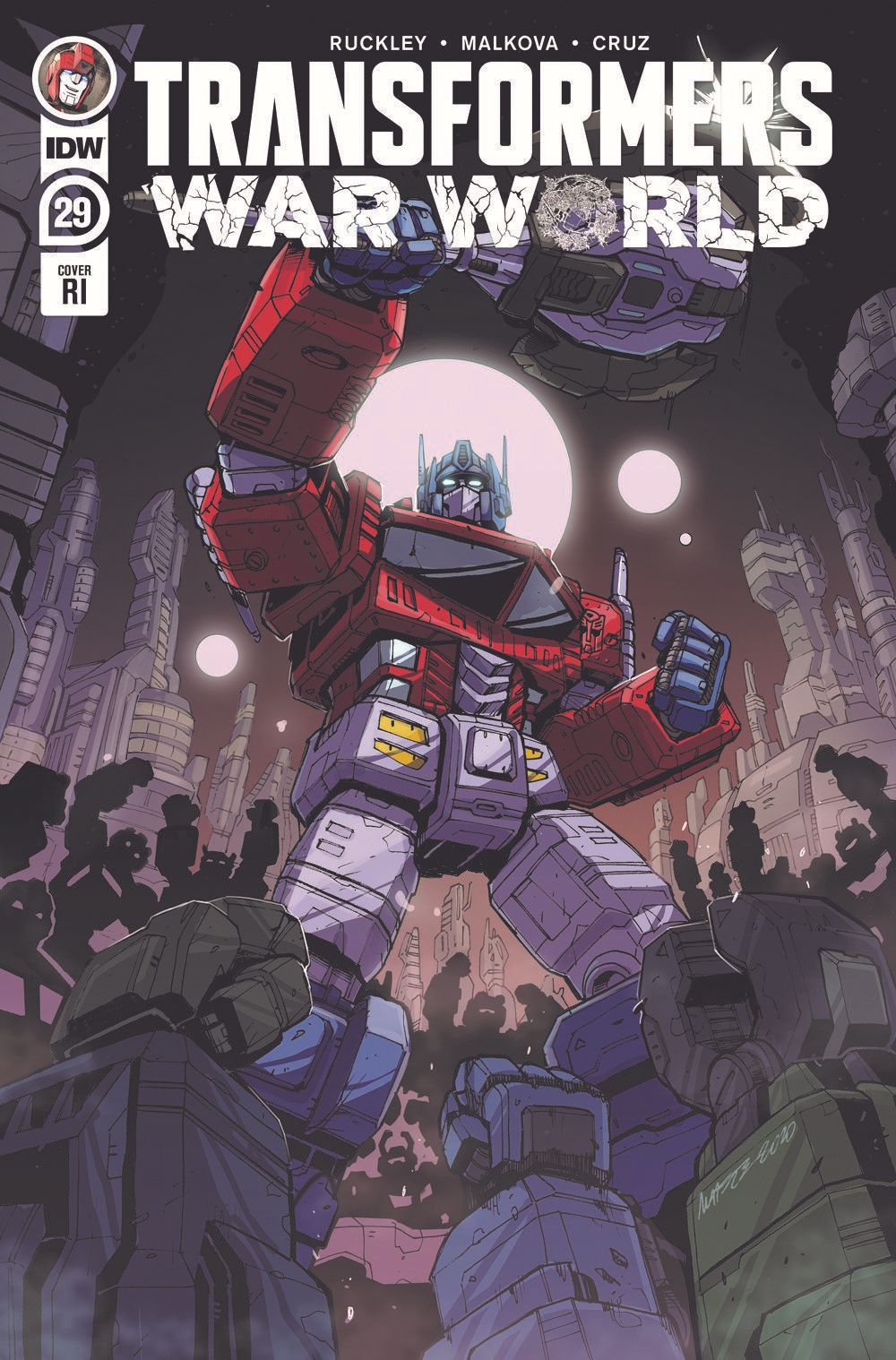 "War World: Titans"! Sentinel Prime has a secret—something that could change the fate of Cybertron—something that Megatron wants. It's a battle for control of the Forge as the Autobots and the Decepticons come face-to-face in battle for the first time!