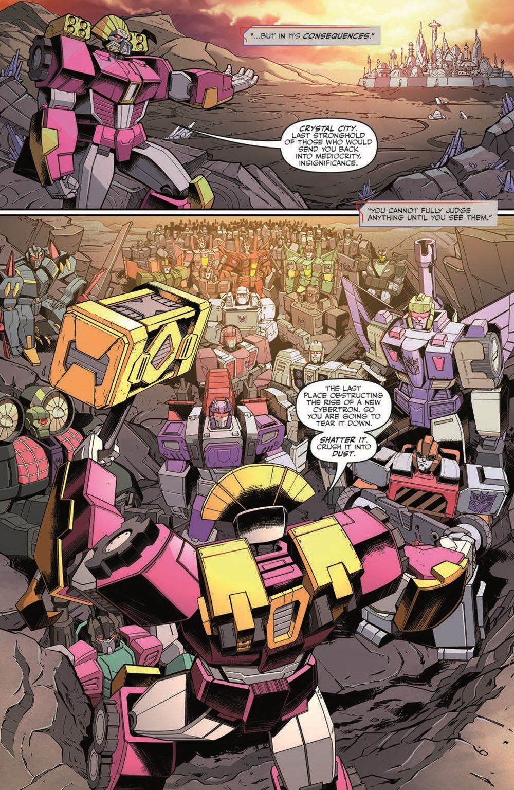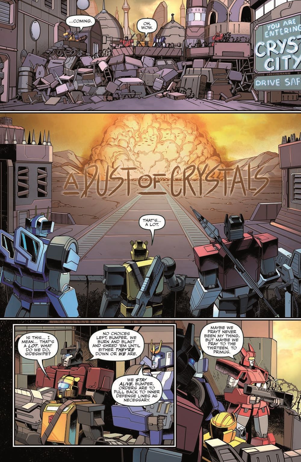 Shattered! The Autobots have withdrawn to the Crystal City and the Decepticons are at their gates! But with Optimus Prime and Bumblebee finally reunited, will this be the Autobots' last stand or their greatest hour?! Don't miss the other side of the epic story in this month's Transformers: War's End too!